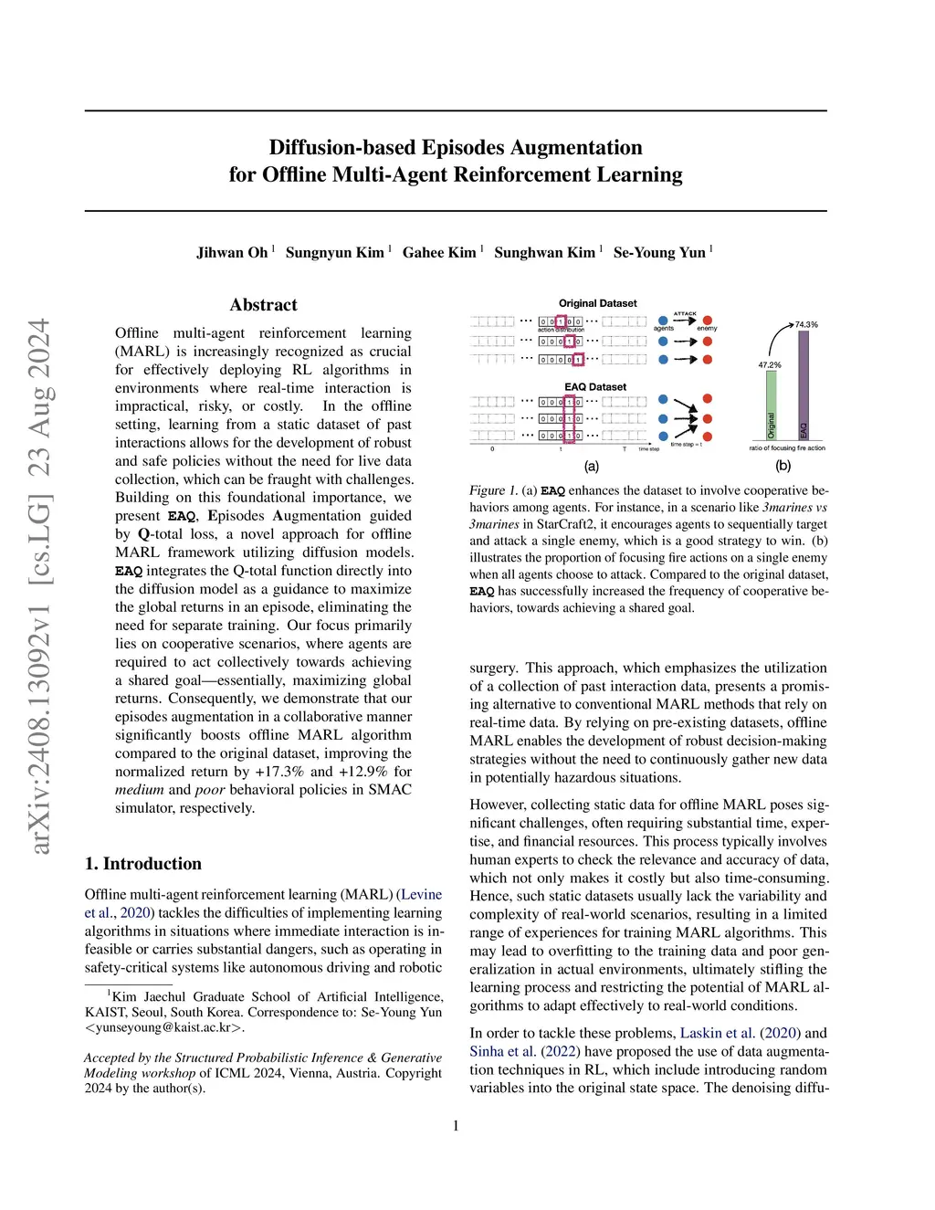 Offline multi-agent reinforcement learning (MARL) is increasingly recognized as crucial for effectively deploying RL algorithms in environments where real-time interaction is impractical, risky, or costly. In the offline setting, learning from a static dataset of past interactions allows for the development of robust and safe policies without the need for live data collection, which can be fraught with challenges. Building on this foundational importance, we present EAQ, Episodes Augmentation guided by Q-total loss, a novel approach for offline MARL framework utilizing diffusion models. EAQ integrates the Q-total function directly into the diffusion model as a guidance to maximize the global returns in an episode, eliminating the need for separate training. Our focus primarily lies on cooperative scenarios, where agents are required to act collectively towards achieving a shared goal-essentially, maximizing global returns. Consequently, we demonstrate that our episodes augmentation in a collaborative manner significantly boosts offline MARL algorithm compared to the original dataset, improving the normalized return by +17.3% and +12.9% for medium and poor behavioral policies in SMAC simulator, respectively.