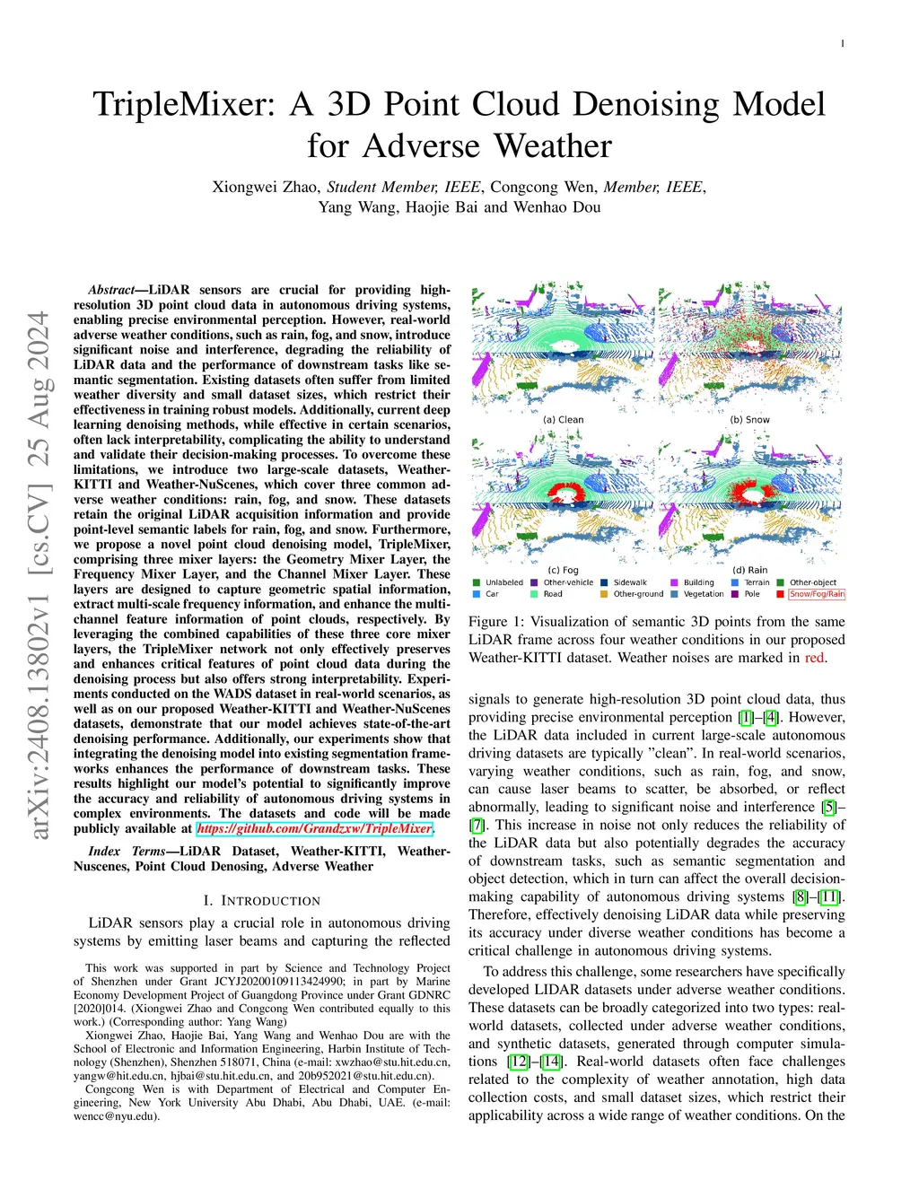 TripleMixer: A 3D Point Cloud Denoising Model for Adverse Weather