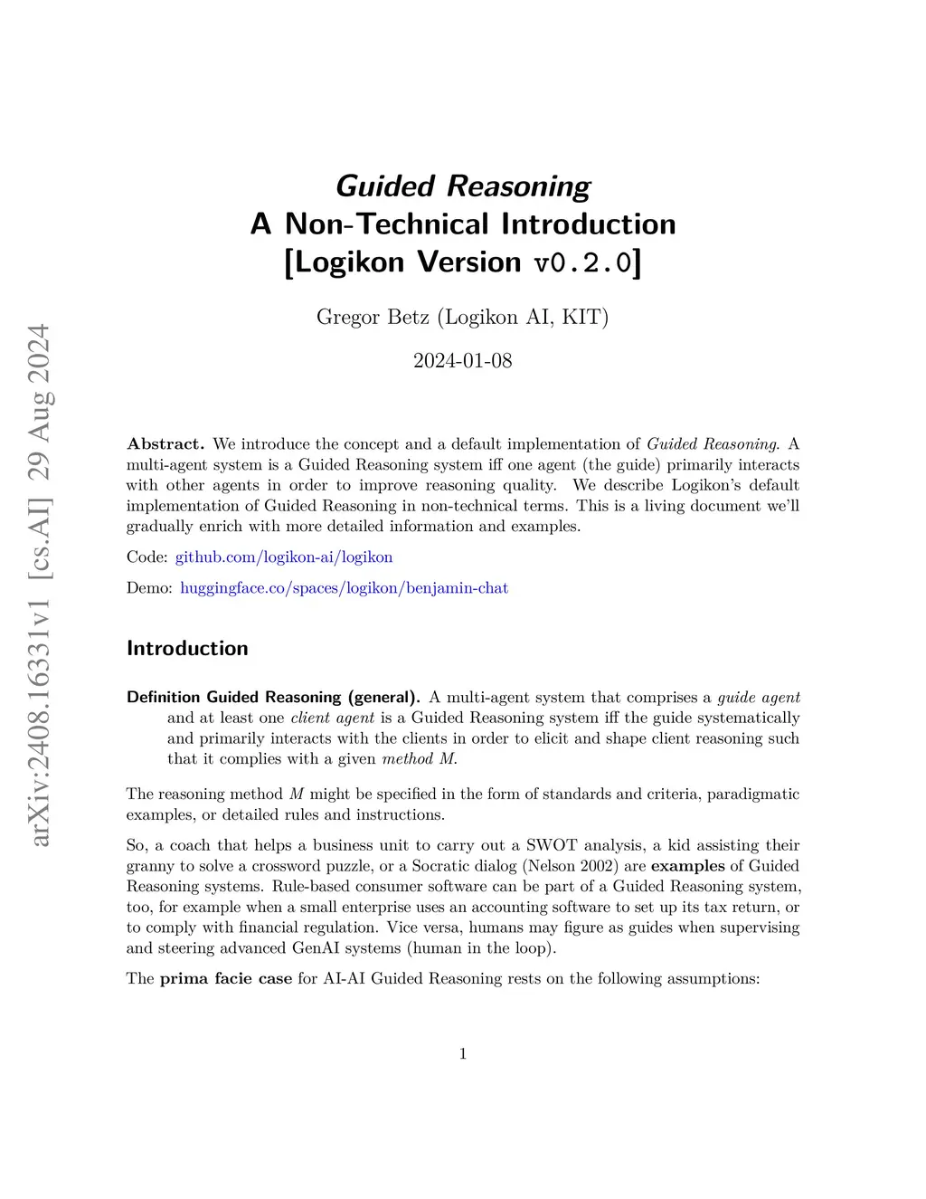 We introduce the concept and a default implementation of Guided Reasoning. A multi-agent system is a Guided Reasoning system iff one agent (the guide) primarily interacts with other agents in order to improve reasoning quality. We describe Logikon's default implementation of Guided Reasoning in non-technical terms. This is a living document we'll gradually enrich with more detailed information and examples. Code: https://github.com/logikon-ai/logikon