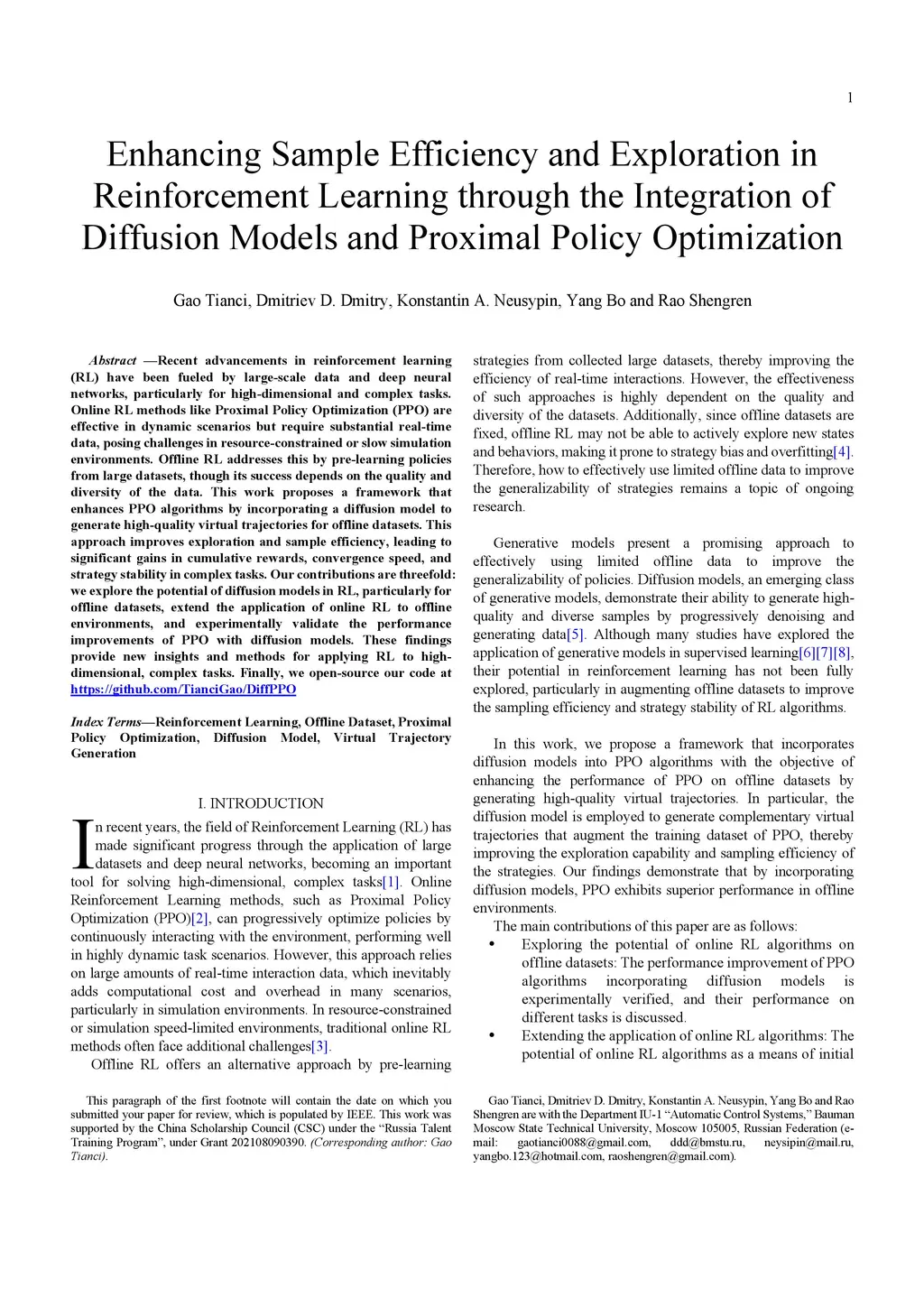 Enhancing Sample Efficiency and Exploration in Reinforcement Learning through the Integration of Diffusion Models and Proximal Policy Optimization
