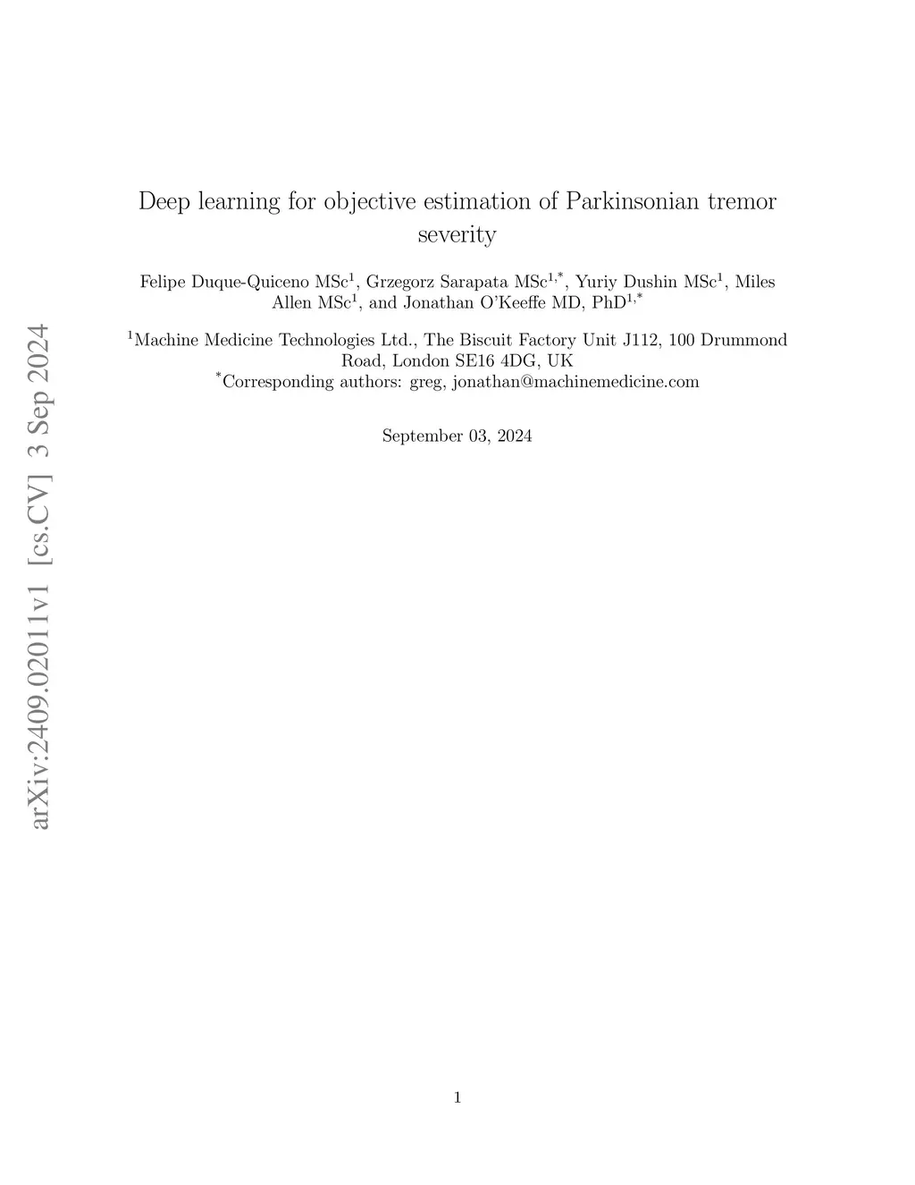 Deep learning for objective estimation of Parkinsonian tremor severity