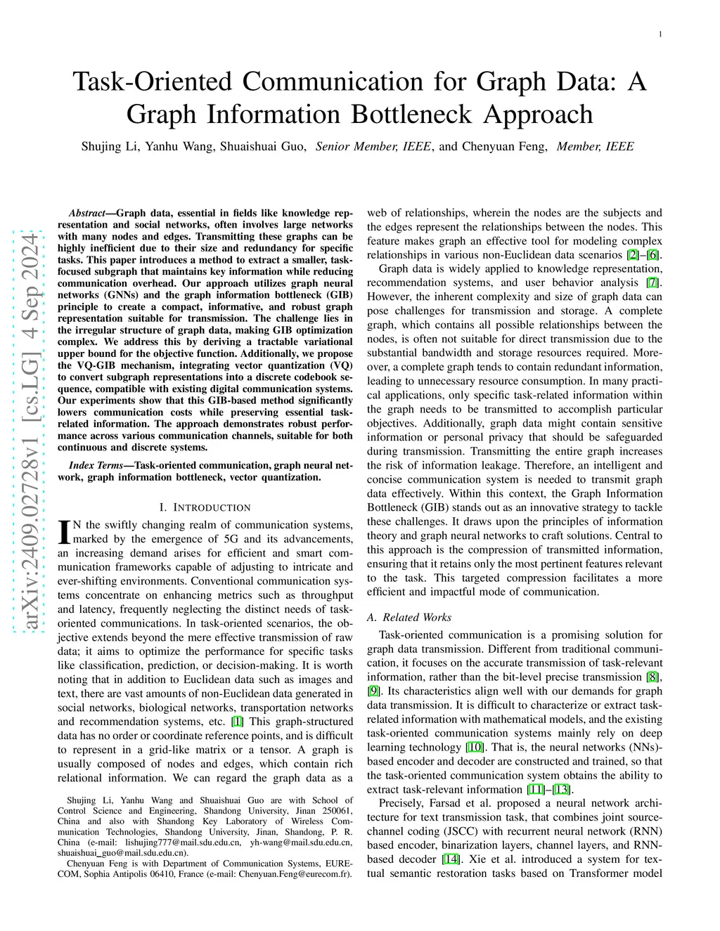Graph data, essential in fields like knowledge representation and social networks, often involves large networks with many nodes and edges. Transmitting these graphs can be highly inefficient due to their size and redundancy for specific tasks. This paper introduces a method to extract a smaller, task-focused subgraph that maintains key information while reducing communication overhead. Our approach utilizes graph neural networks (GNNs) and the graph information bottleneck (GIB) principle to create a compact, informative, and robust graph representation suitable for transmission. The challenge lies in the irregular structure of graph data, making GIB optimization complex. We address this by deriving a tractable variational upper bound for the objective function. Additionally, we propose the VQ-GIB mechanism, integrating vector quantization (VQ) to convert subgraph representations into a discrete codebook sequence, compatible with existing digital communication systems. Our experiments show that this GIB-based method significantly lowers communication costs while preserving essential task-related information. The approach demonstrates robust performance across various communication channels, suitable for both continuous and discrete systems.