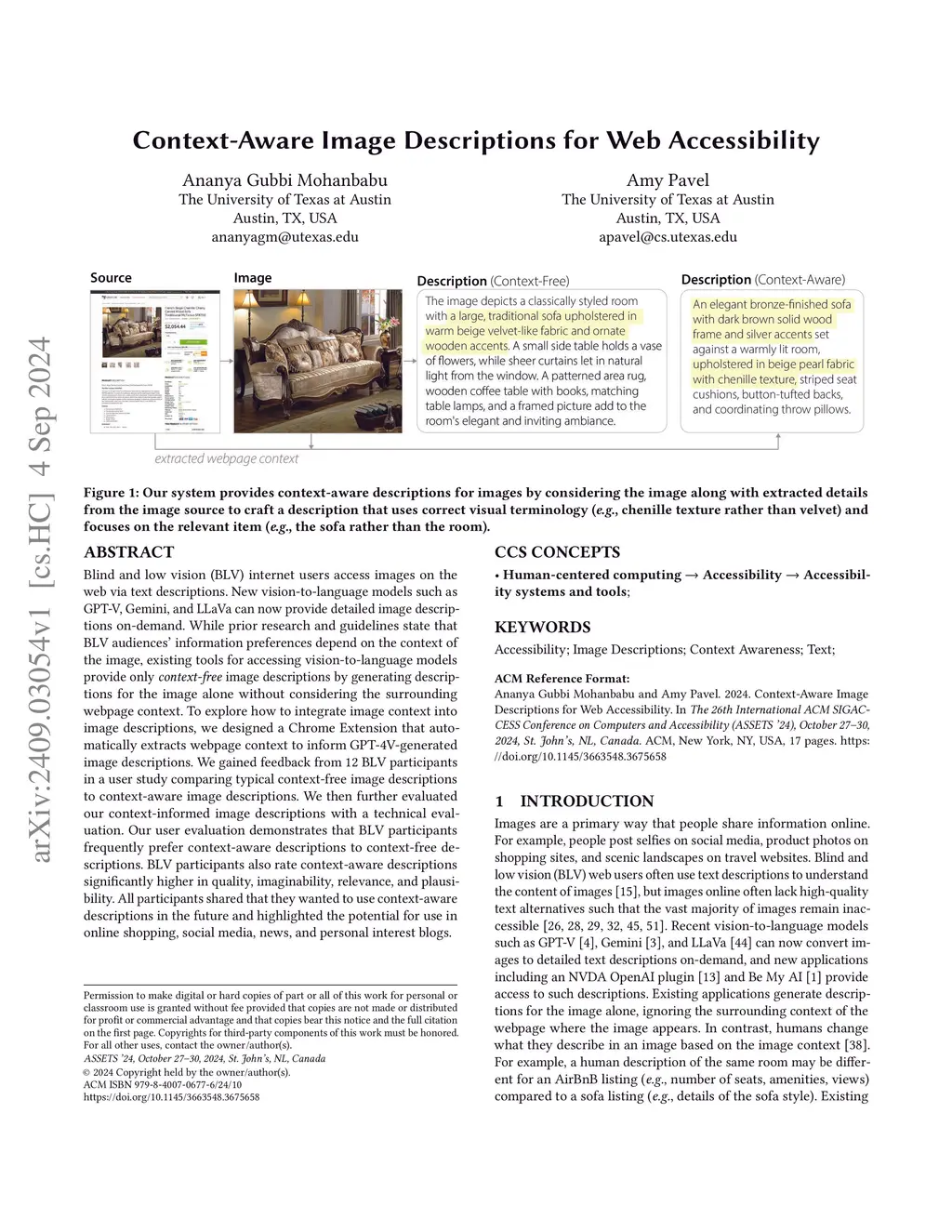 Context-Aware Image Descriptions for Web Accessibility