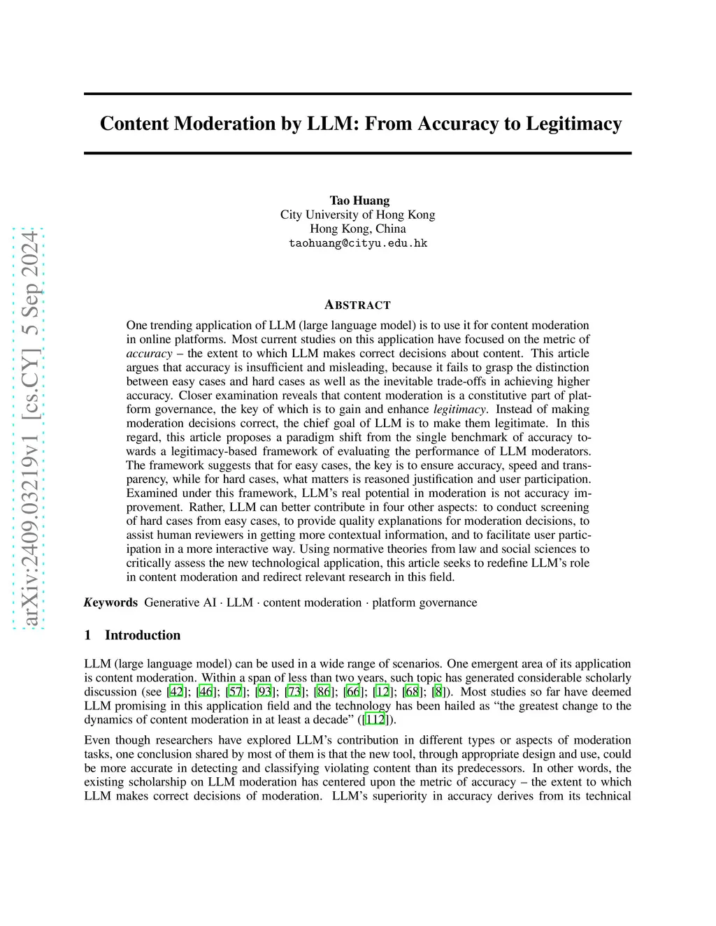 Content Moderation by LLM: From Accuracy to Legitimacy