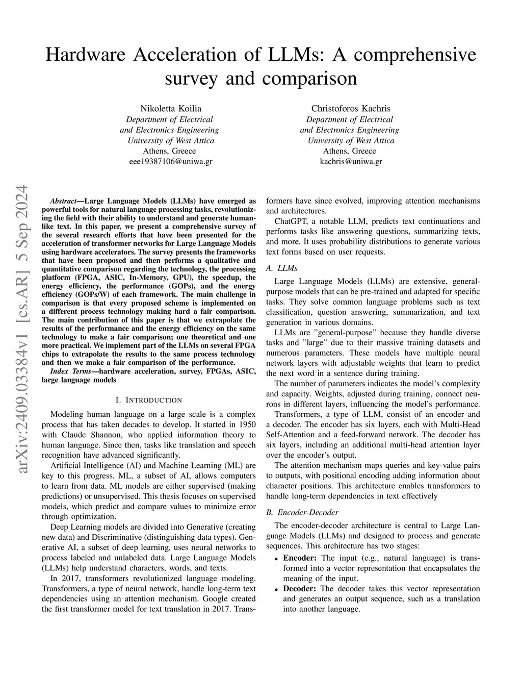 Hardware Acceleration of LLMs: A comprehensive survey and comparison