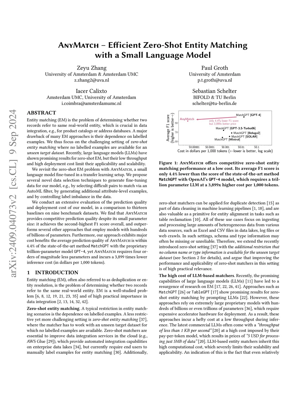 AnyMatch -- Efficient Zero-Shot Entity Matching with a Small Language