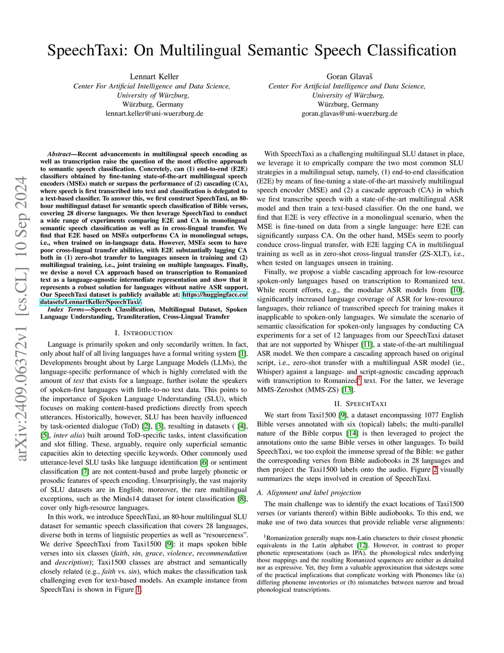 SpeechTaxi: On Multilingual Semantic Speech Classification