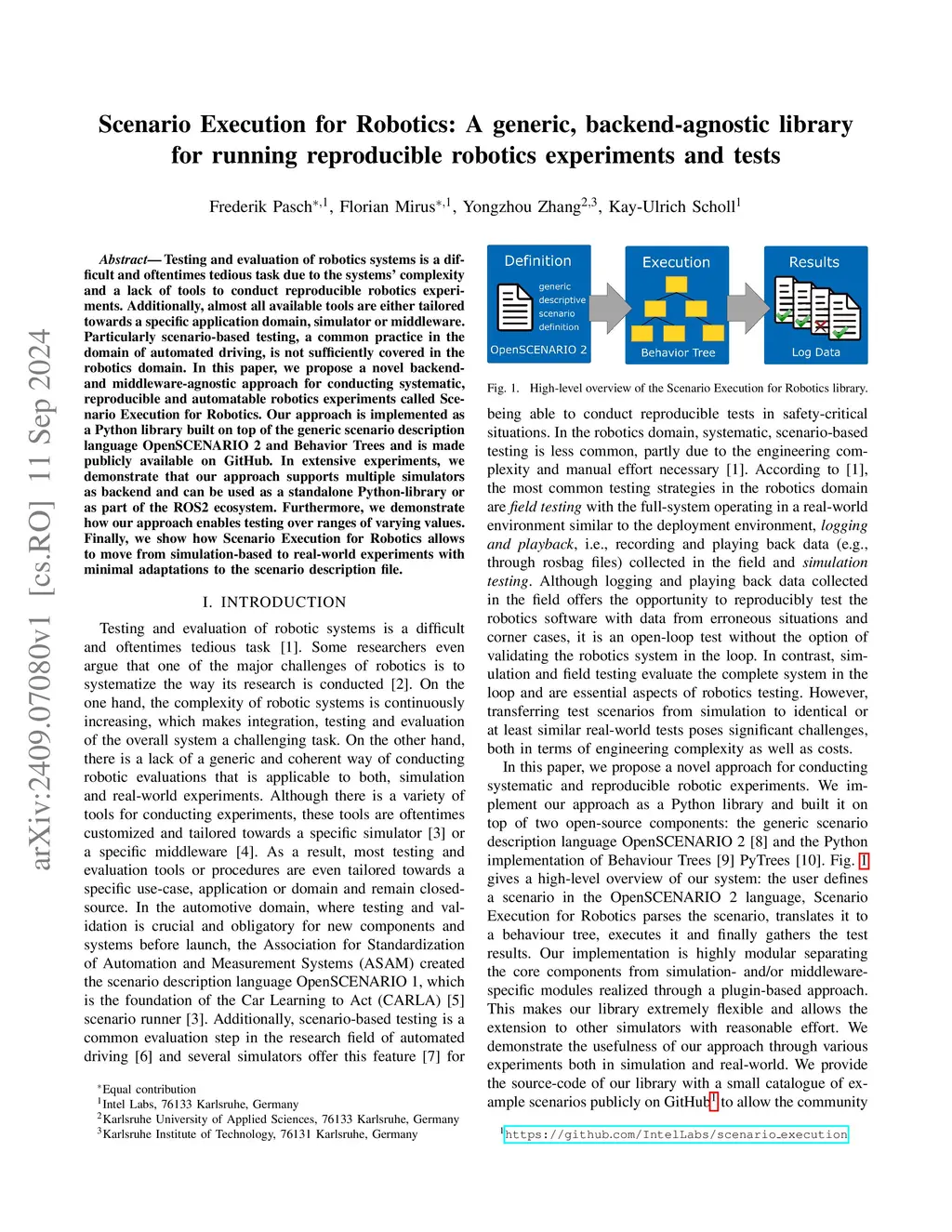 Scenario Execution for Robotics: A generic, backend-agnostic library for