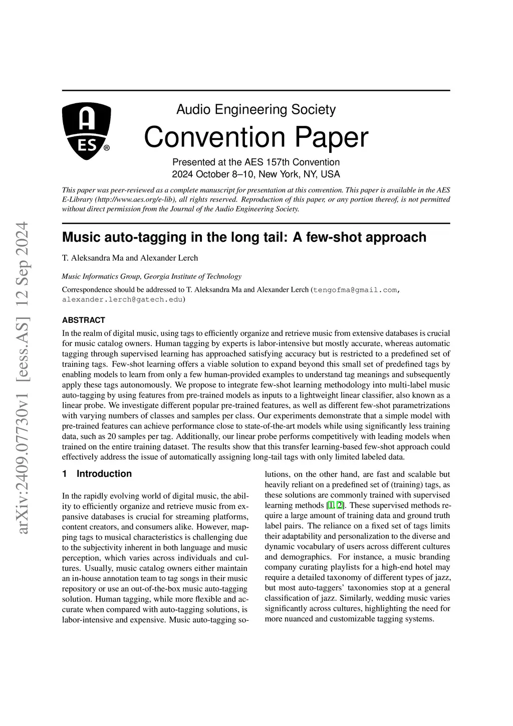In the realm of digital music, using tags to efficiently organize and retrieve music from extensive databases is crucial for music catalog owners. Human tagging by experts is labor-intensive but mostly accurate, whereas automatic tagging through supervised learning has approached satisfying accuracy but is restricted to a predefined set of training tags. Few-shot learning offers a viable solution to expand beyond this small set of predefined tags by enabling models to learn from only a few human-provided examples to understand tag meanings and subsequently apply these tags autonomously. We propose to integrate few-shot learning methodology into multi-label music auto-tagging by using features from pre-trained models as inputs to a lightweight linear classifier, also known as a linear probe. We investigate different popular pre-trained features, as well as different few-shot parametrizations with varying numbers of classes and samples per class. Our experiments demonstrate that a simple model with pre-trained features can achieve performance close to state-of-the-art models while using significantly less training data, such as 20 samples per tag. Additionally, our linear probe performs competitively with leading models when trained on the entire training dataset. The results show that this transfer learning-based few-shot approach could effectively address the issue of automatically assigning long-tail tags with only limited labeled data.