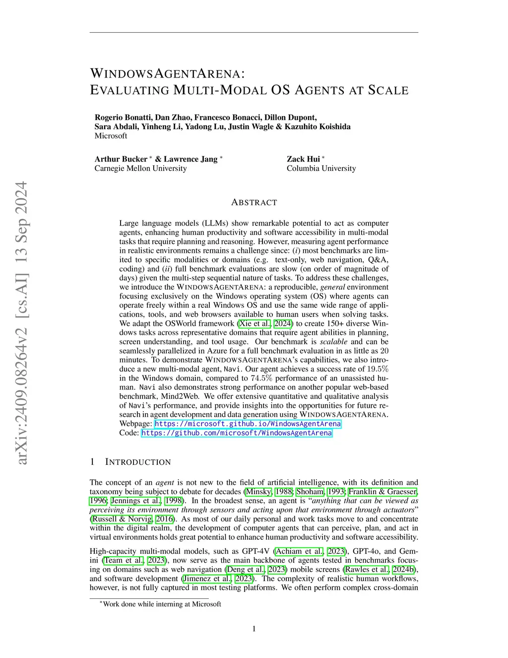 Windows Agent Arena: Evaluating Multi-Modal OS Agents at Scale