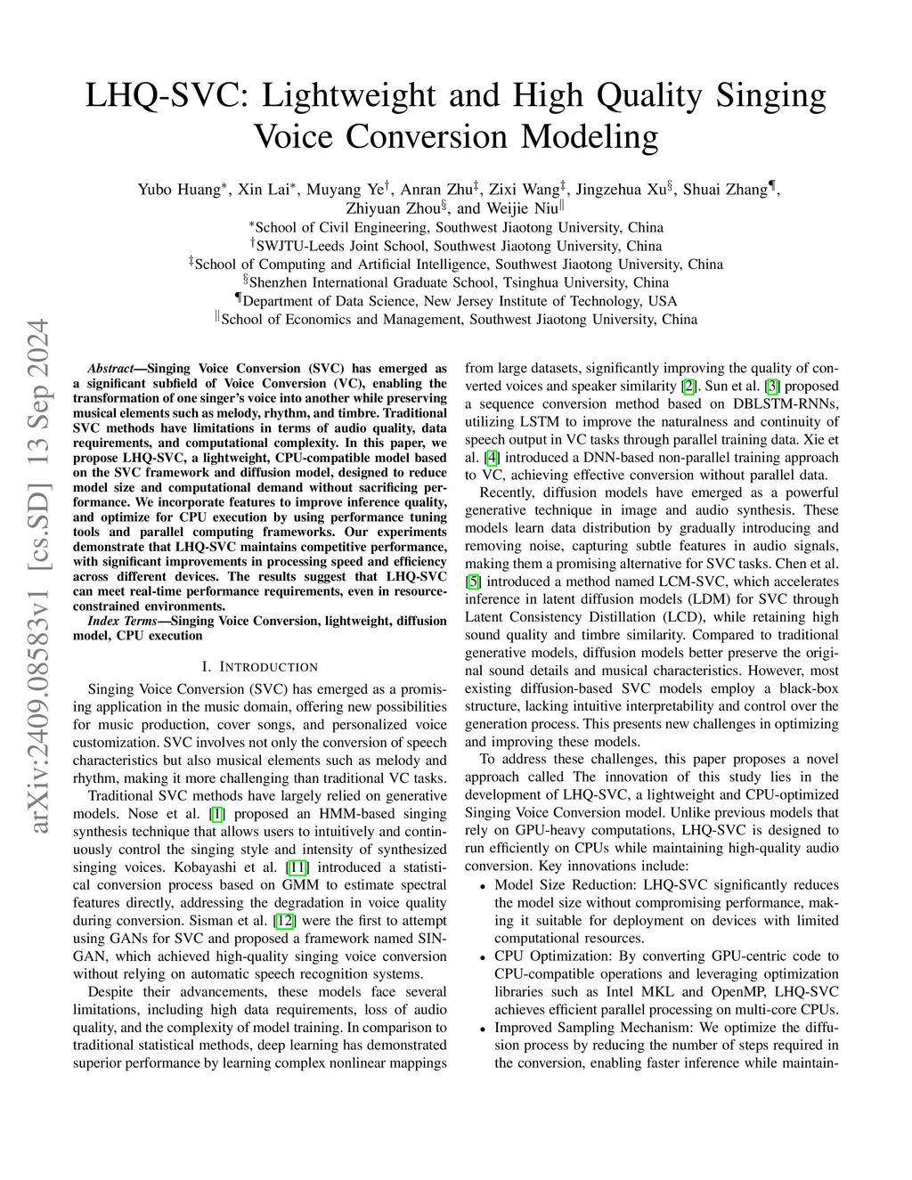 Singing Voice Conversion (SVC) has emerged as a significant subfield of Voice Conversion (VC), enabling the transformation of one singer's voice into another while preserving musical elements such as melody, rhythm, and timbre. Traditional SVC methods have limitations in terms of audio quality, data requirements, and computational complexity. In this paper, we propose LHQ-SVC, a lightweight, CPU-compatible model based on the SVC framework and diffusion model, designed to reduce model size and computational demand without sacrificing performance. We incorporate features to improve inference quality, and optimize for CPU execution by using performance tuning tools and parallel computing frameworks. Our experiments demonstrate that LHQ-SVC maintains competitive performance, with significant improvements in processing speed and efficiency across different devices. The results suggest that LHQ-SVC can meet