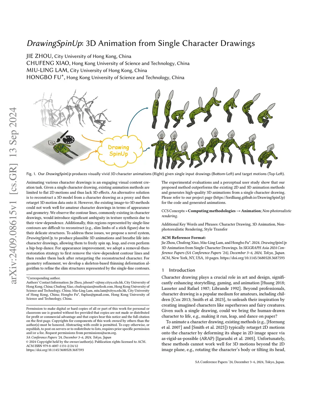DrawingSpinUp: 3D Animation from Single Character Drawings