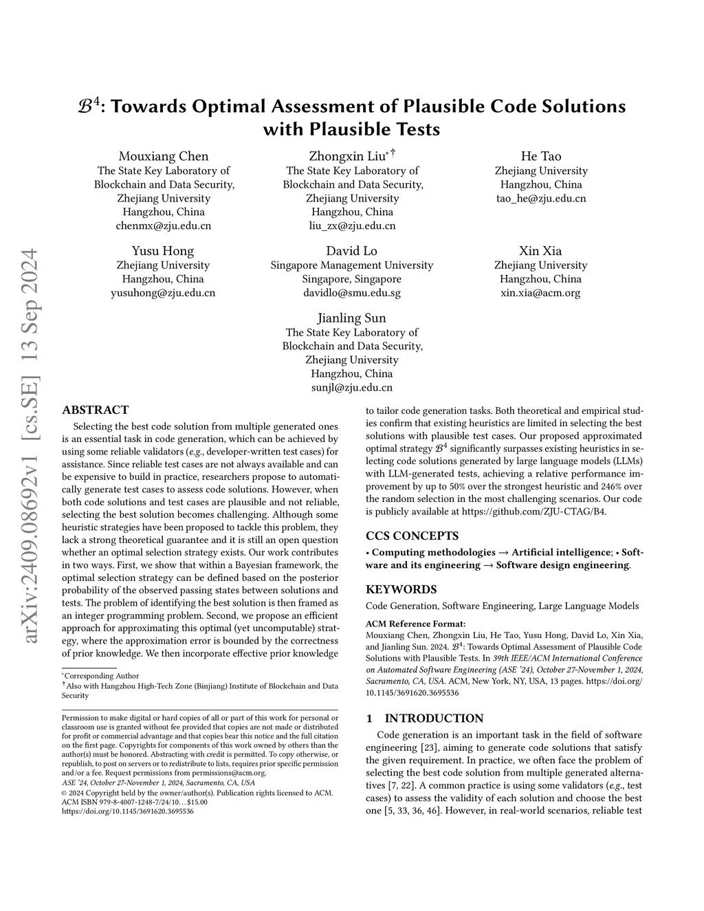 B4: Towards Optimal Assessment of Plausible Code Solutions with