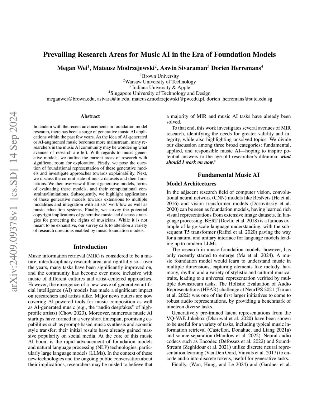 Prevailing Research Areas for Music AI in the Era of Foundation Models