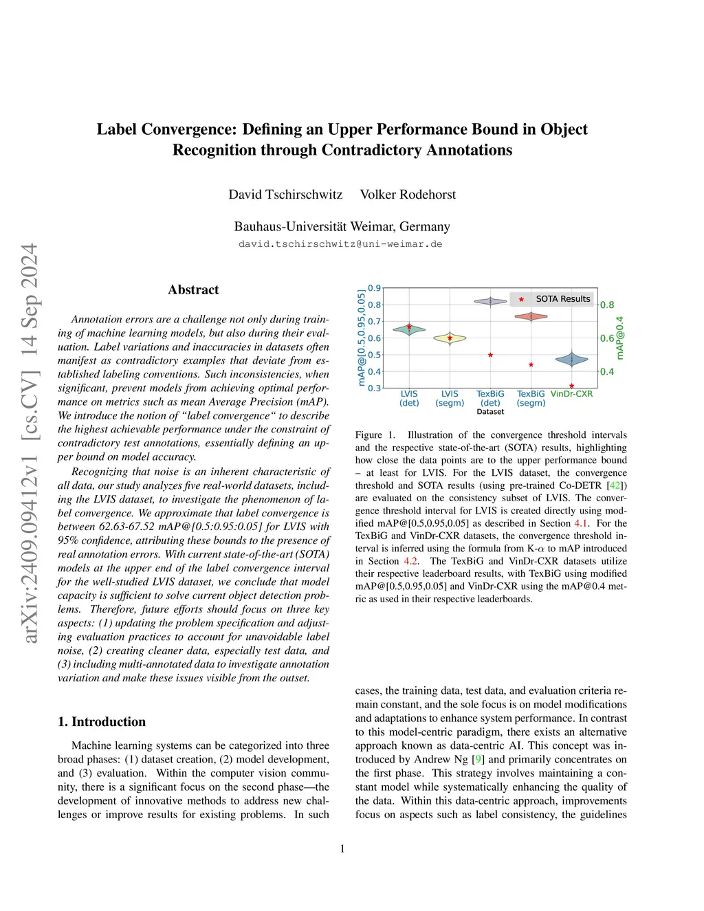 Annotation errors are a challenge not only during training of machine learning models, but also during their evaluation. Label variations and inaccuracies in datasets often manifest as contradictory examples that deviate from established labeling conventions. Such inconsistencies, when significant, prevent models from achieving optimal performance on metrics such as mean Average Precision (mAP). We introduce the notion of "label convergence" to describe the highest achievable performance under the constraint of contradictory test annotations, essentially defining an upper bound on model accuracy.Recognizing that noise is an inherent characteristic of all data, our study analyzes five real-world datasets, including the LVIS dataset, to investigate the phenomenon of label convergence. We approximate that label convergence is between 62.63-67.52 mAP@[0.5:0.95:0.05] for LVIS with 95% confidence, attributing these bounds to the presence of real annotation errors. With current state-of-the-art (SOTA) models at the upper end of the label convergence interval for the well-studied LVIS dataset, we conclude that model capacity is sufficient to solve current object detection problems. Therefore, future efforts should focus on three key aspects: (1) updating the problem specification and adjusting evaluation practices to account for unavoidable label noise, (2) creating cleaner data, especially test data, and (3) including multi-annotated data to investigate annotation variation and make these issues visible from the outset.