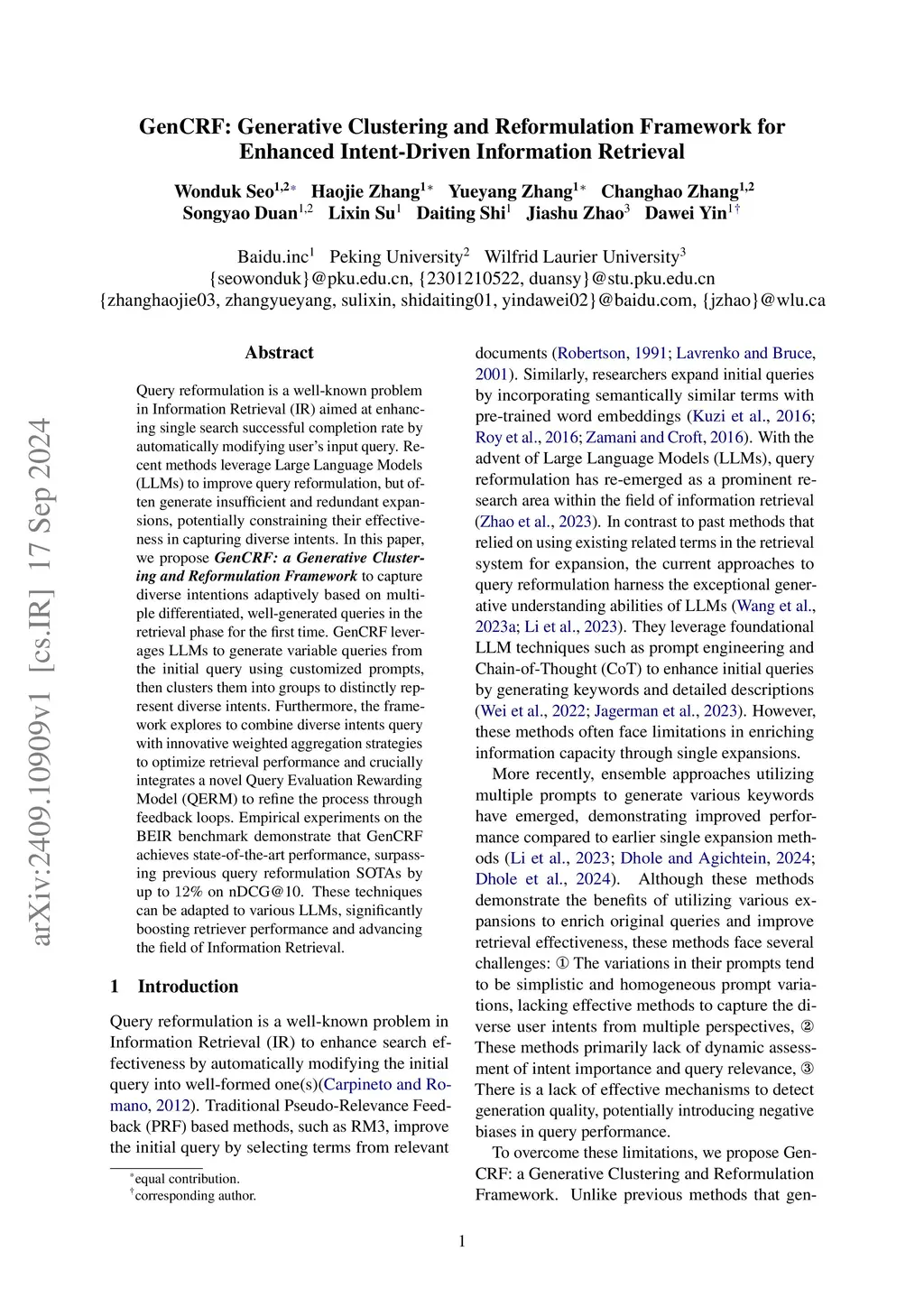 GenCRF: Generative Clustering and Reformulation Framework for Enhanced