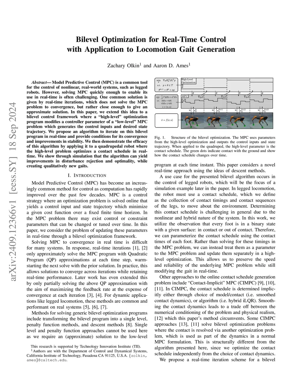 Model Predictive Control (MPC) is a common tool for the control of nonlinear, real-world systems, such as legged robots. However, solving MPC quickly enough to enable its use in real-time is often challenging. One common solution is given by real-time iterations, which does not solve the MPC problem to convergence, but rather close enough to give an approximate solution. In this paper, we extend this idea to a bilevel control framework where a "high-level" optimization program modifies a controller parameter of a "low-level" MPC problem which generates the control inputs and desired state trajectory. We propose an algorithm to iterate on this bilevel program in real-time and provide conditions for its convergence and improvements in stability. We then demonstrate the efficacy of this algorithm by applying it to a quadrupedal robot where the high-level problem optimizes a contact schedule in real-time. We show through simulation that the algorithm can yield improvements in disturbance rejection and optimality, while creating qualitatively new gaits.