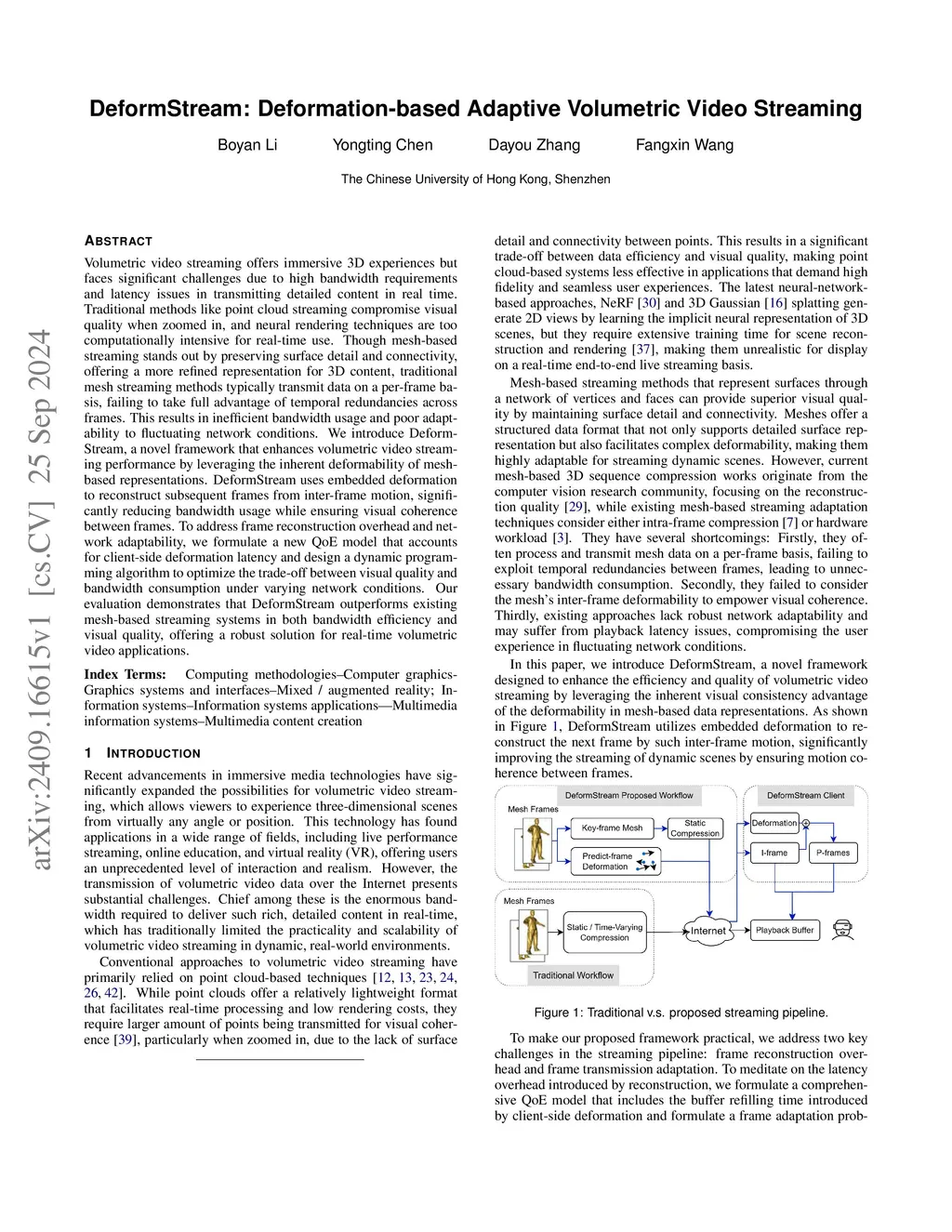 DeformStream: Deformation-based Adaptive Volumetric Video Streaming