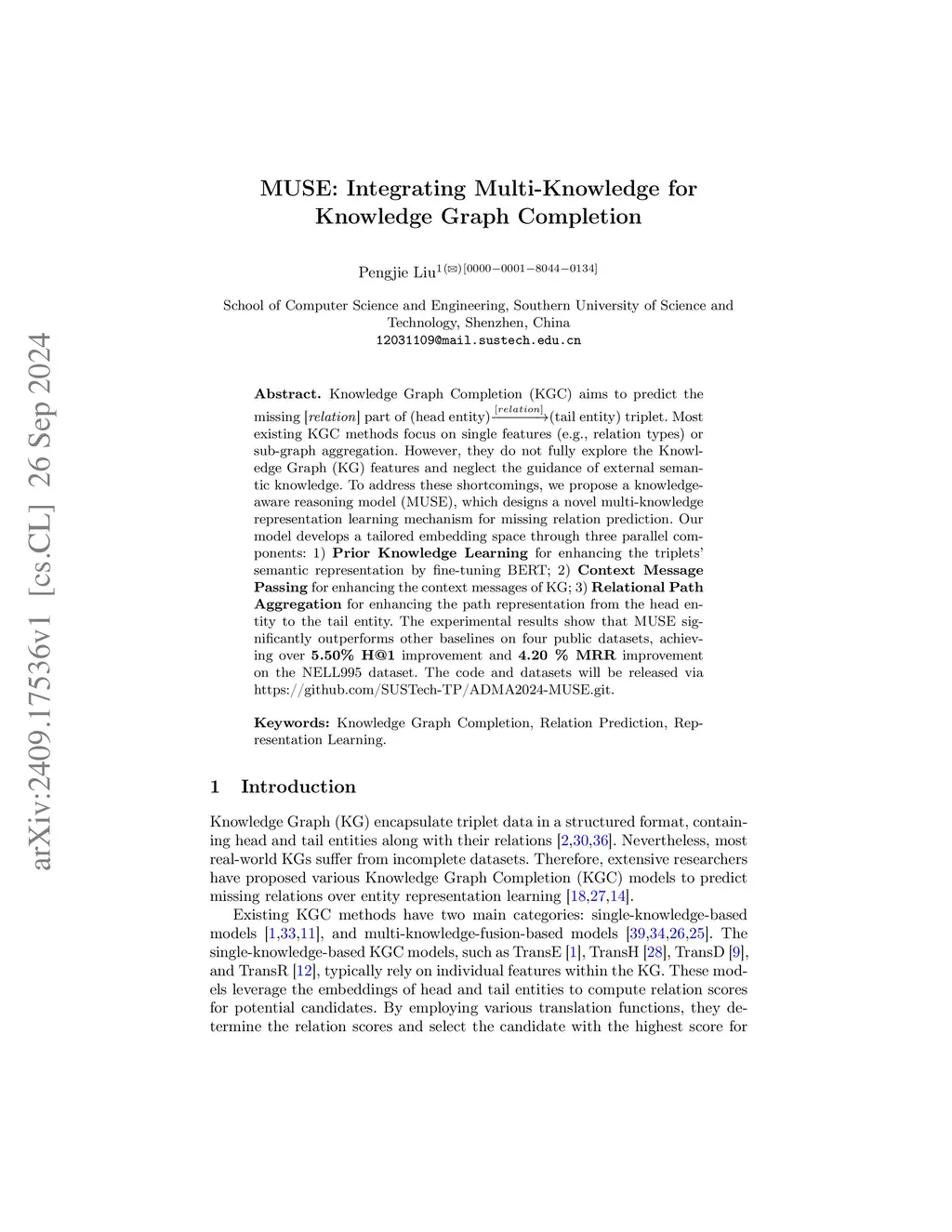 MUSE: Integrating Multi-Knowledge for Knowledge Graph Completion