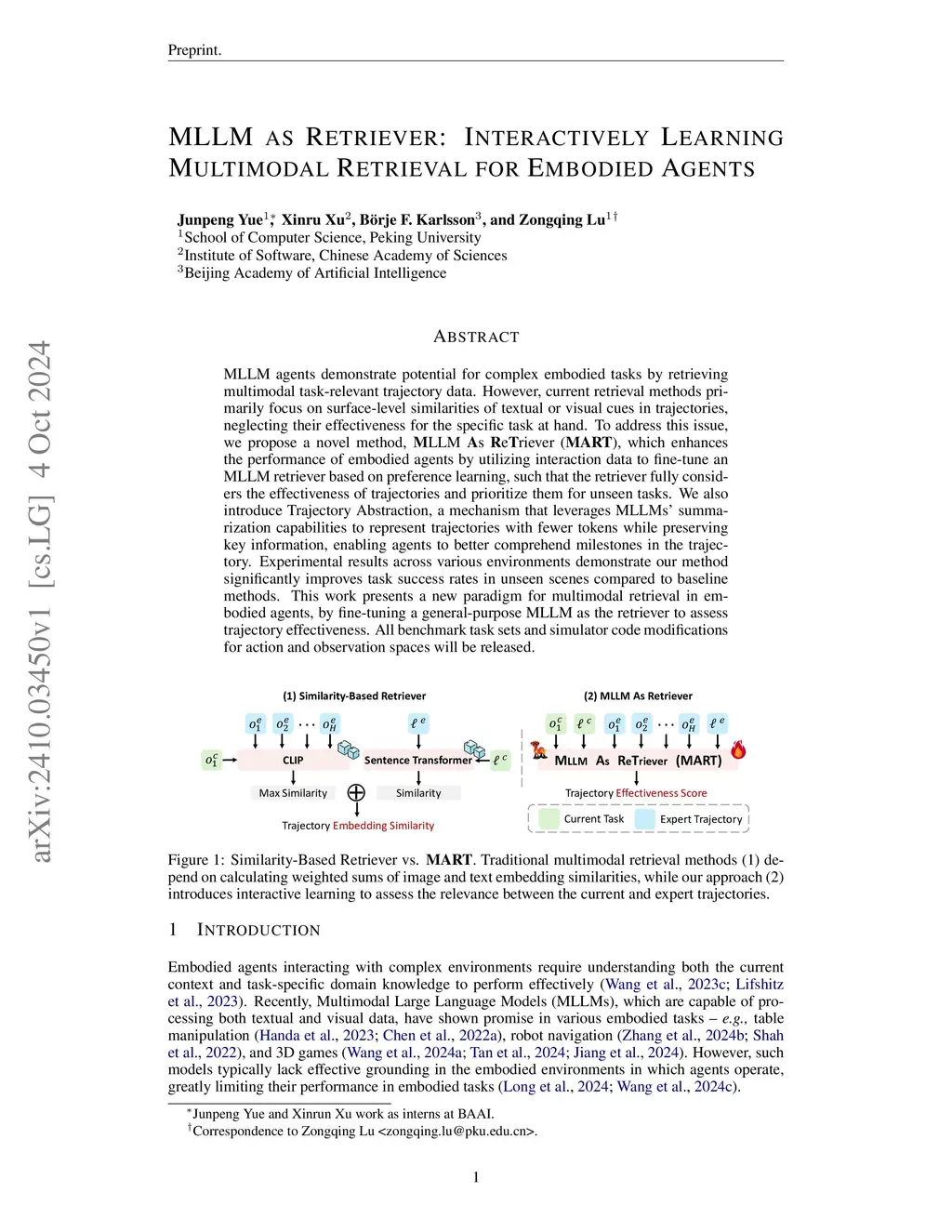 MLLM as Retriever: Interactively Learning Multimodal Retrieval for Embodied Agents