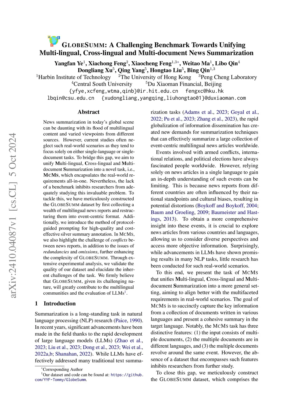 GlobeSumm: A Challenging Benchmark Towards Unifying Multi-lingual,