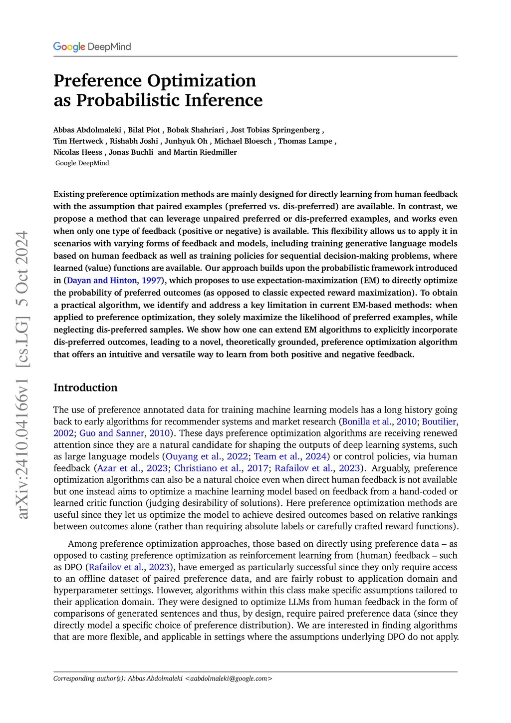 Existing preference optimization methods often assume scenarios where paired preference feedback (preferred/positive vs. dis-preferred/negative examples) is available. This requirement limits their applicability in scenarios where only unpaired feedback--for example, either positive or negative--is available. To address this, we introduce a novel approach that decouples learning from positive and negative feedback. This decoupling enables control over the influence of each feedback type and, importantly, allows learning even when only one feedback type is present. A key contribution is demonstrating stable learning from negative feedback alone, a capability not well-addressed by current methods. Our approach builds upon the probabilistic framework introduced in (Dayan and Hinton, 1997), which uses expectation-maximization (EM) to directly optimize the probability of positive outcomes (as opposed to classic expected reward maximization). We address a key limitation in current EM-based methods: they solely maximize the likelihood of positive examples, while neglecting negative ones. We show how to extend EM algorithms to explicitly incorporate negative examples, leading to a theoretically grounded algorithm that offers an intuitive and versatile way to learn from both positive and negative feedback. We evaluate our approach for training language models based on human feedback as well as training policies for sequential decision-making problems, where learned value functions are available.