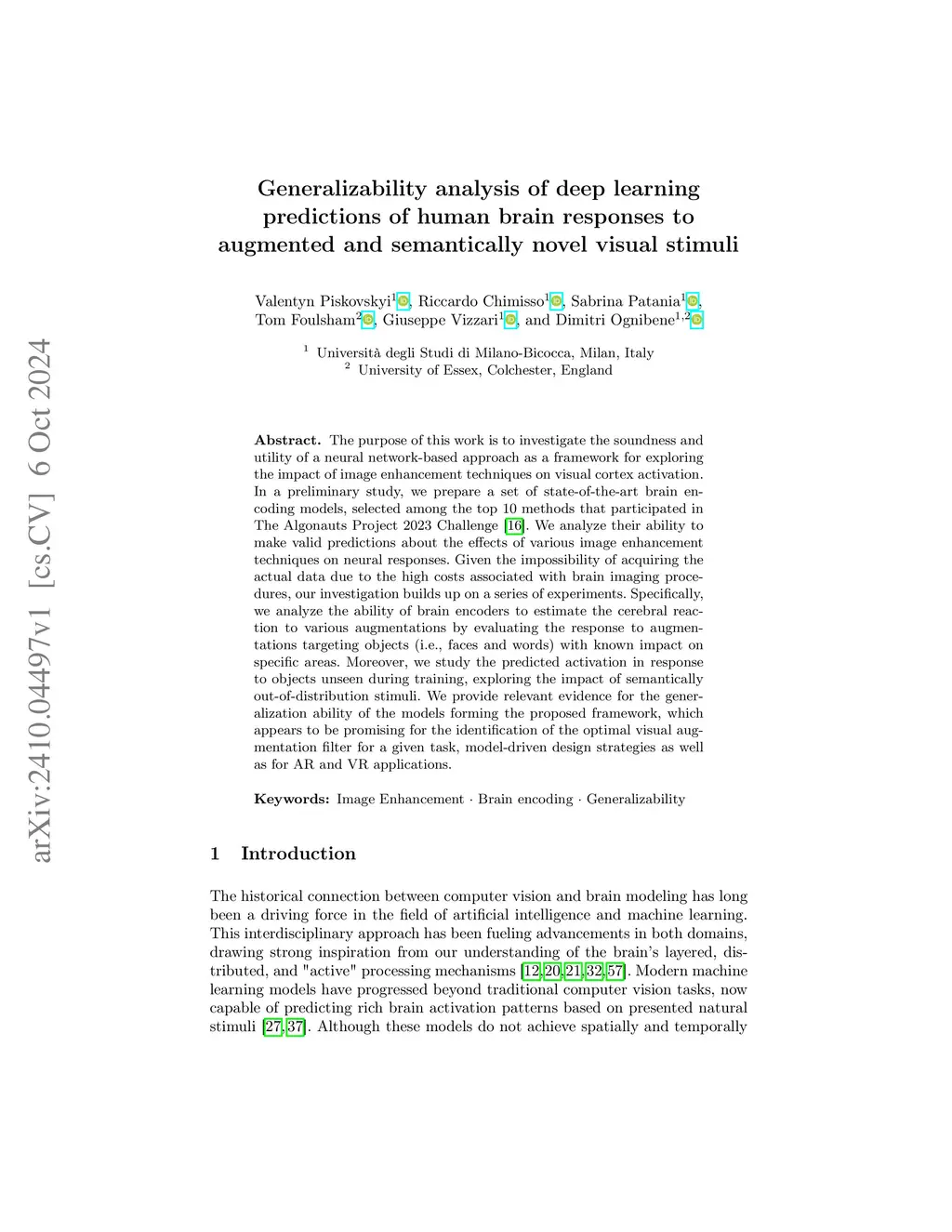The purpose of this work is to investigate the soundness and utility of a neural network-based approach as a framework for exploring the impact of image enhancement techniques on visual cortex activation. In a preliminary study, we prepare a set of state-of-the-art brain encoding models, selected among the top 10 methods that participated in The Algonauts Project 2023 Challenge [16]. We analyze their ability to make valid predictions about the effects of various image enhancement techniques on neural responses. Given the impossibility of acquiring the actual data due to the high costs associated with brain imaging procedures, our investigation builds up on a series of experiments. Specifically, we analyze the ability of brain encoders to estimate the cerebral reaction to various augmentations by evaluating the response to augmentations targeting objects (i.e., faces and words) with known impact on specific areas. Moreover, we study the predicted activation in response to objects unseen during training, exploring the impact of semantically out-of-distribution stimuli. We provide relevant evidence for the generalization ability of the models forming the proposed framework, which appears to be promising for the identification of the optimal visual augmentation filter for a given task, model-driven design strategies as well as for AR and VR applications.