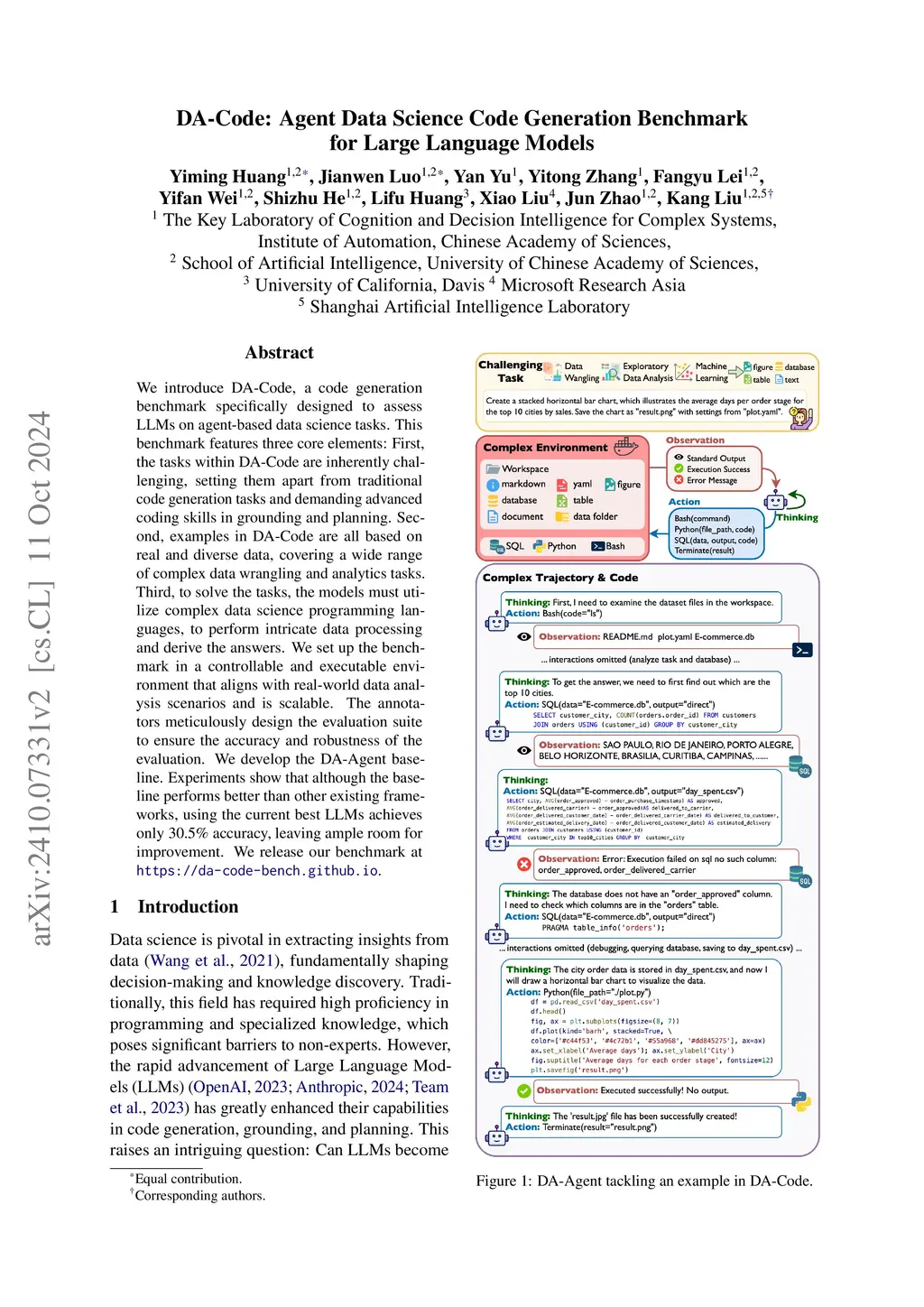 DA-Code: Agent Data Science Code Generation Benchmark for Large Language