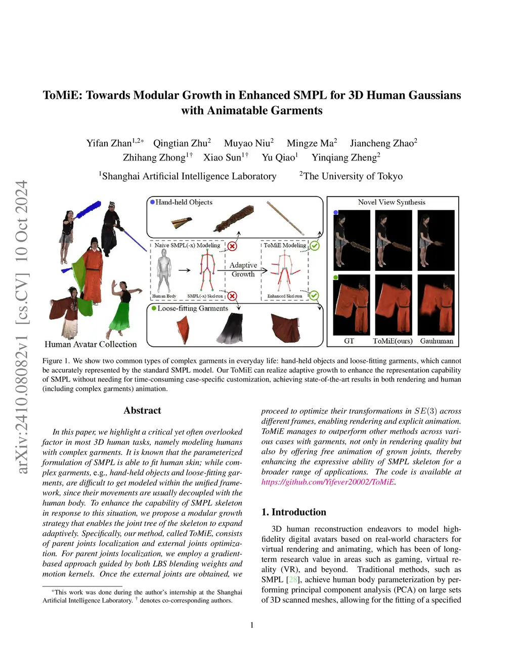 In this paper, we highlight a critical yet often overlooked factor in most 3D human tasks, namely modeling complicated 3D human with with hand-held objects or loose-fitting clothing. It is known that the parameterized formulation of SMPL is able to fit human skin; while hand-held objects and loose-fitting clothing, are difficult to get modeled within the unified framework, since their movements are usually decoupled with the human body. To enhance the capability of SMPL skeleton in response to this situation, we propose a growth strategy that enables the joint tree of the skeleton to expand adaptively. Specifically, our method, called ToMiE, consists of parent joints localization and external joints optimization. For parent joints localization, we employ a gradient-based approach guided by both LBS blending weights and motion kernels. Once the external joints are obtained, we proceed to optimize their transformations in SE(3) across different frames, enabling rendering and explicit animation. ToMiE manages to outperform other methods across various cases with hand-held objects and loose-fitting clothing, not only in rendering quality but also by offering free animation of grown joints, thereby enhancing the expressive ability of SMPL skeleton for a broader range of applications.