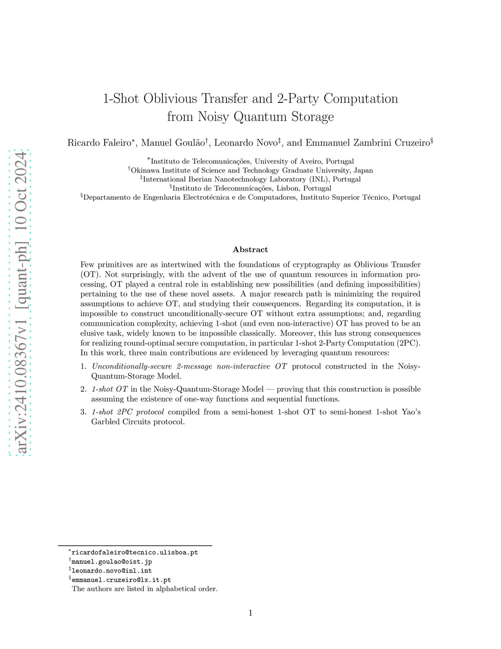 Few primitives are as intertwined with the foundations of cryptography as Oblivious Transfer (OT). Not surprisingly, with the advent of quantum information processing, a major research path has emerged, aiming to minimize the requirements necessary to achieve OT by leveraging quantum resources, while also exploring the implications for secure computation. Indeed, OT has been the target of renewed focus regarding its newfound quantum possibilities (and impossibilities), both towards its computation and communication complexity. For instance, non-interactive OT, known to be impossible classically, has been strongly pursued. In its most extreme form, non-interactive chosen-input OT (one-shot OT) is equivalent to a One-Time Memory (OTM). OTMs have been proposed as tamper-proof hardware solutions for constructing One-Time Programs -- single-use programs that execute on an arbitrary input without revealing anything about their internal workings. In this work, we leverage quantum resources in the Noisy-Quantum-Storage Model to achieve:1. Unconditionally-secure two-message non-interactive OT -- the smallest number of messages known to date for unconditionally-secure chosen-input OT.2. Computationally-secure one-shot OT/OTM, with everlasting security, assuming only one-way functions and sequential functions -- without requiring trusted hardware, QROM, or pre-shared entanglement.3. One-Time Programs without the need for hardware-based solutions or QROM, by compiling our OTM construction with the [GKR08, GIS+10] compiler.