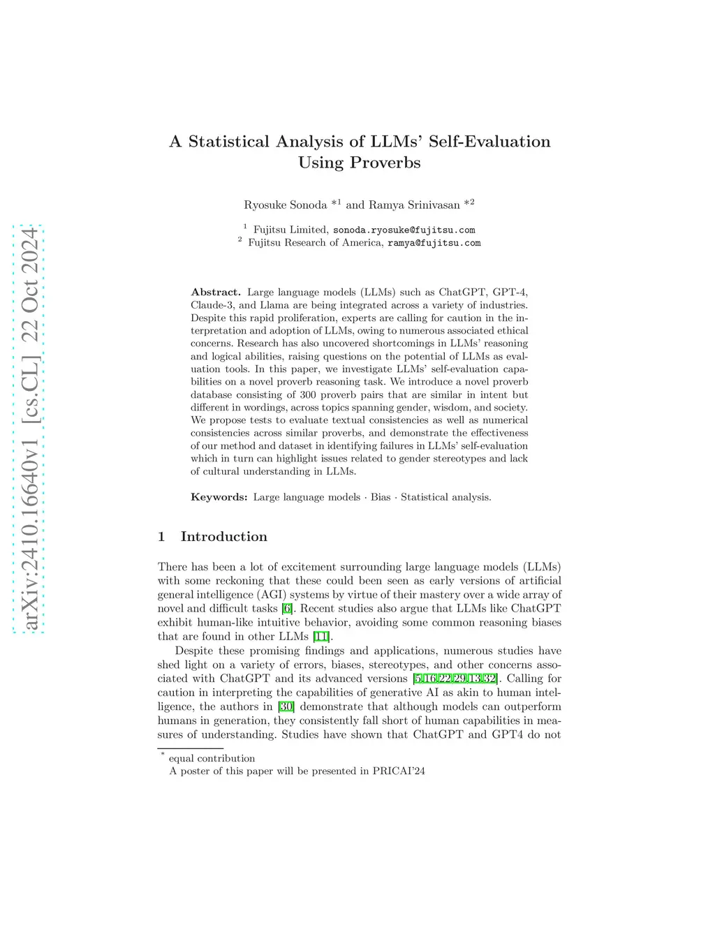 A Statistical Analysis of LLMs' Self-Evaluation Using Proverbs