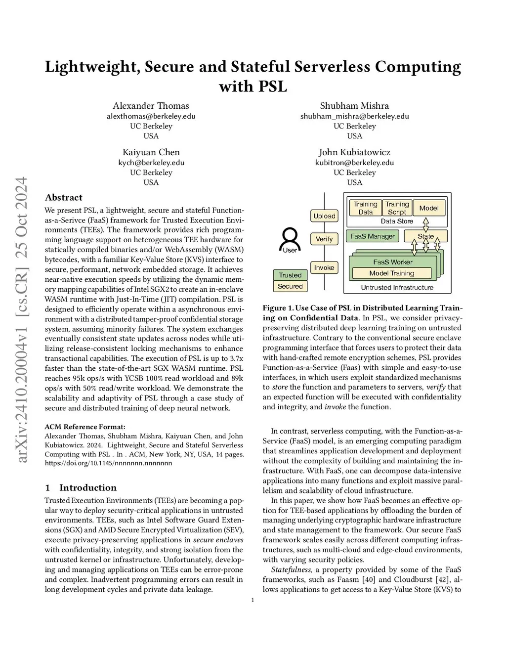 Lightweight, Secure and Stateful Serverless Computing with PSL