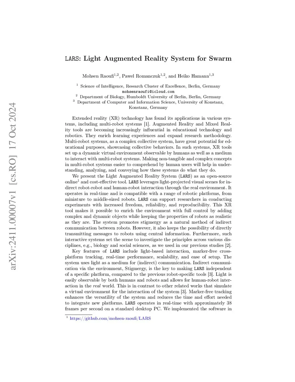 LARS: Light Augmented Reality System for Swarm