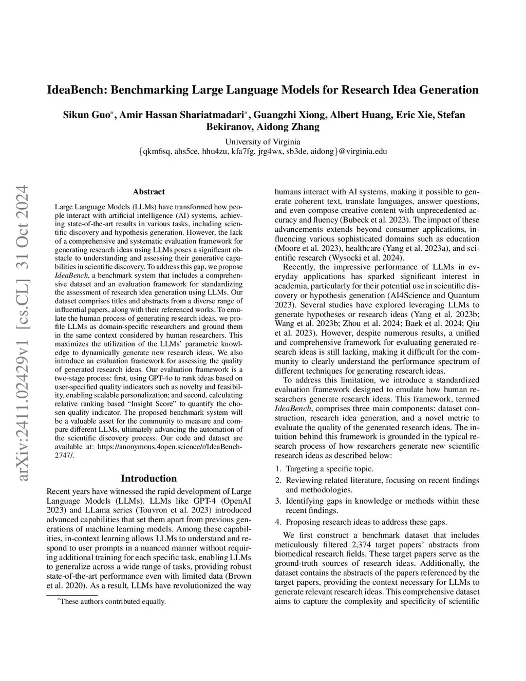 IdeaBench: Benchmarking Large Language Models for Research Idea