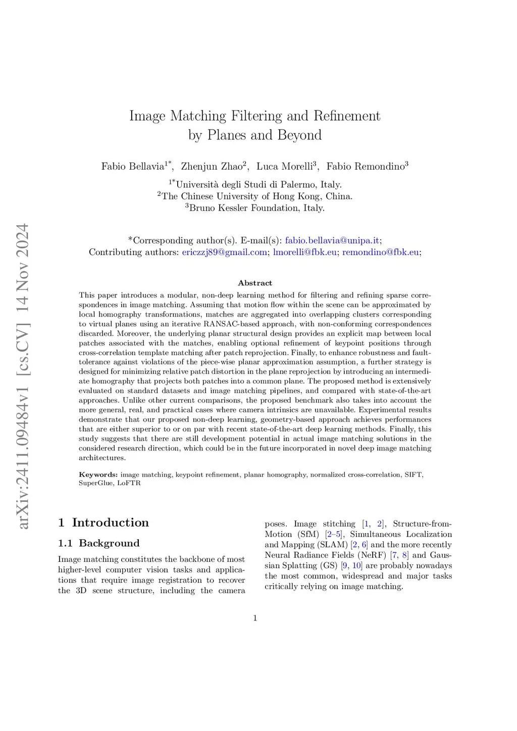 Image Matching Filtering and Refinement by Planes and Beyond