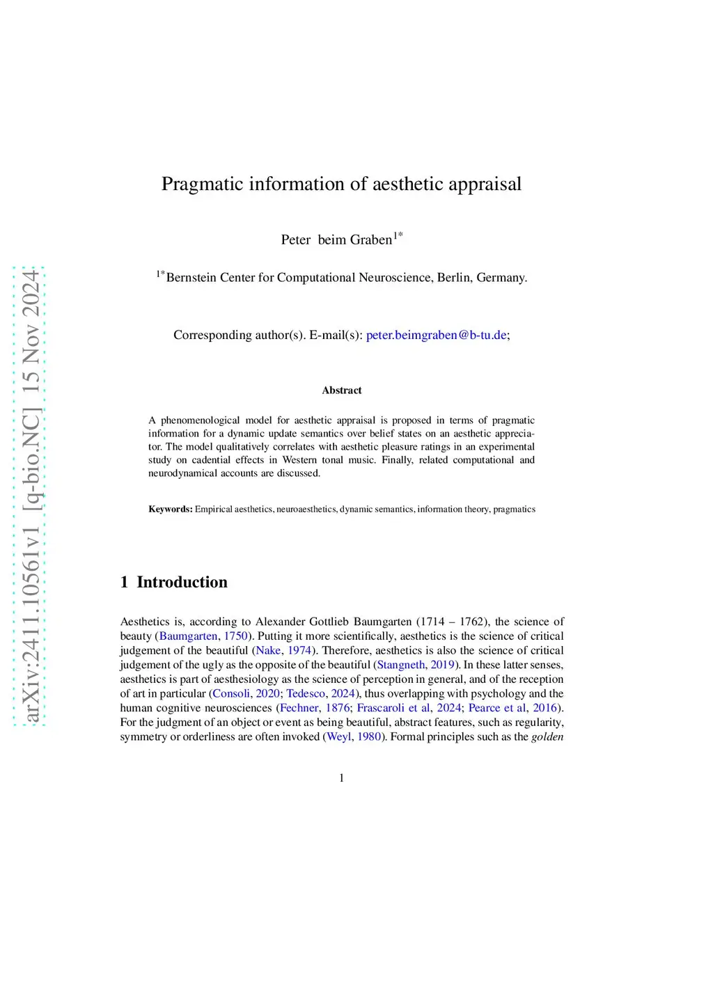 A phenomenological model for aesthetic appraisal is proposed in terms of pragmatic information for a dynamic update semantics over belief states on an aesthetic appreciator. The model qualitatively correlates with aesthetic pleasure ratings in an experimental study on cadential effects in Western tonal music. Finally, related computational and neurodynamical accounts are discussed.