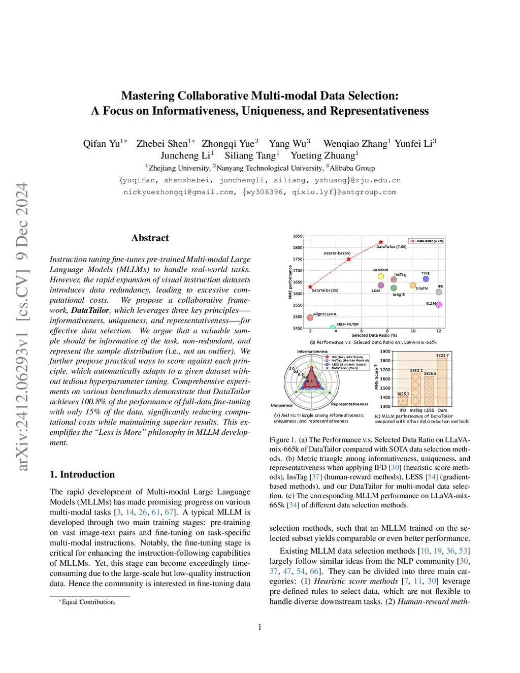 Mastering Collaborative Multi-modal Data Selection: A Focus on Informativeness, Uniqueness, and Representativeness