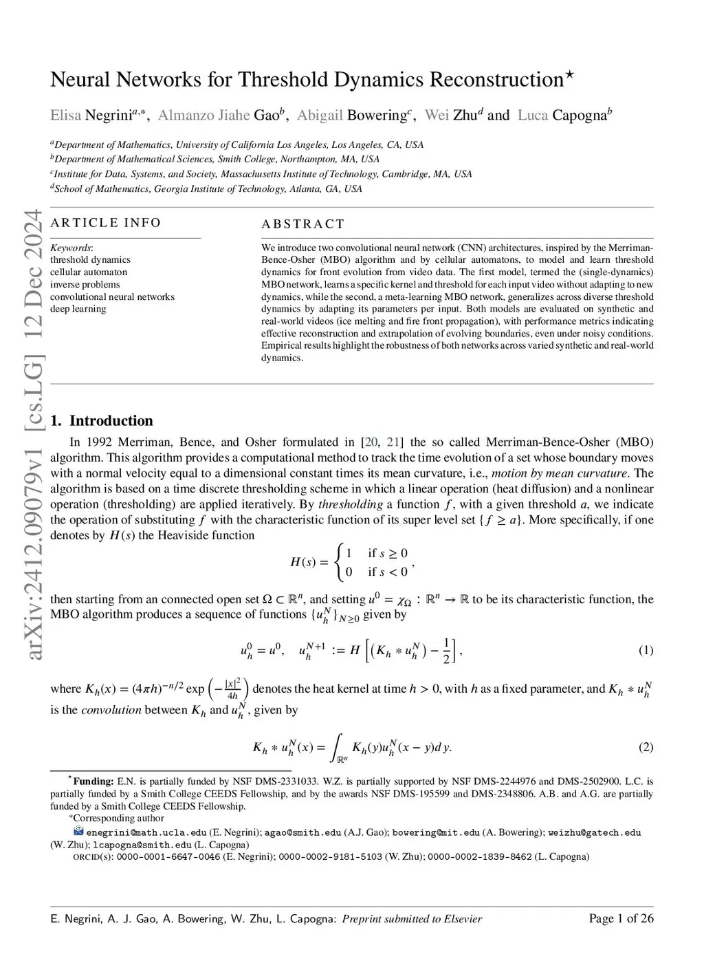 We introduce two convolutional neural network (CNN) architectures, inspired by the Merriman-Bence-Osher (MBO) algorithm and by cellular automatons, to model and learn threshold dynamics for front evolution from video data. The first model, termed the (single-dynamics) MBO network, learns a specific kernel and threshold for each input video without adapting to new dynamics, while the second, a meta-learning MBO network, generalizes across diverse threshold dynamics by adapting its parameters per input. Both models are evaluated on synthetic and real-world videos (ice melting and fire front propagation), with performance metrics indicating effective reconstruction and extrapolation of evolving boundaries, even under noisy conditions. Empirical results highlight the robustness of both networks across varied synthetic and real-world dynamics.