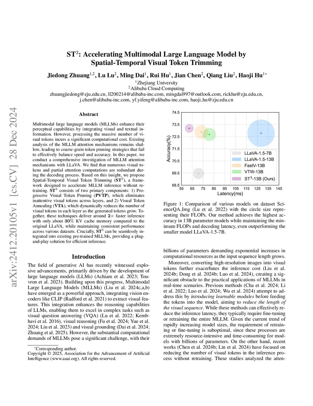 ST: Accelerating Multimodal Large Language Model by Spatial-Temporal Visual Token Trimming