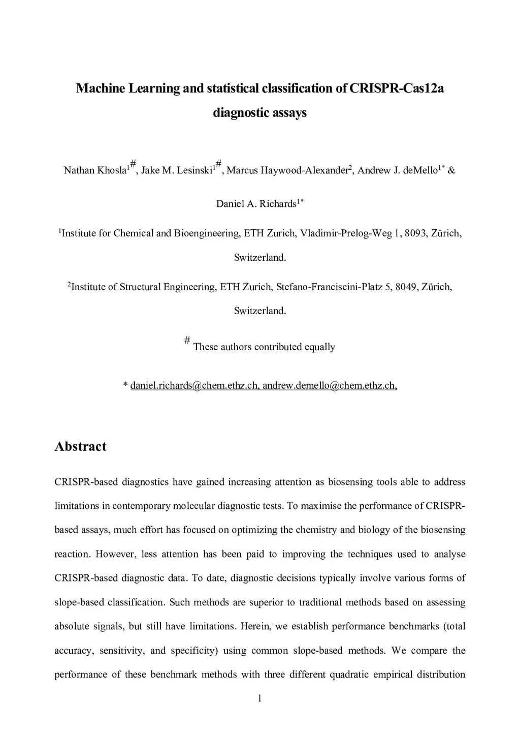 Machine Learning and statistical classification of CRISPR-Cas12a diagnostic assays