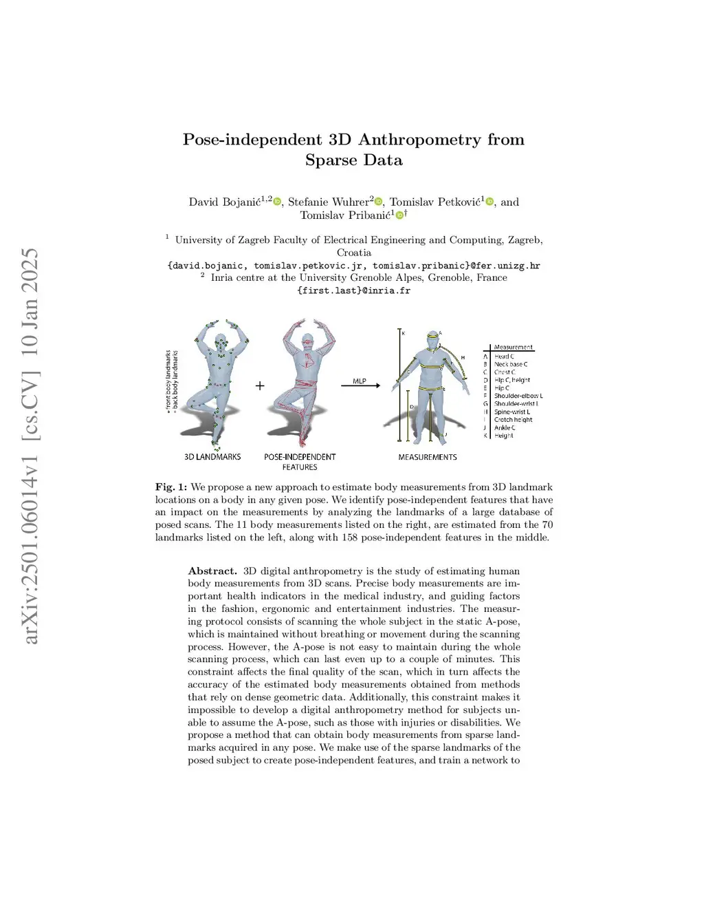 3D digital anthropometry is the study of estimating human body measurements from 3D scans. Precise body measurements are important health indicators in the medical industry, and guiding factors in the fashion, ergonomic and entertainment industries. The measuring protocol consists of scanning the whole subject in the static A-pose, which is maintained without breathing or movement during the scanning process. However, the A-pose is not easy to maintain during the whole scanning process, which can last even up to a couple of minutes. This constraint affects the final quality of the scan, which in turn affects the accuracy of the estimated body measurements obtained from methods that rely on dense geometric data. Additionally, this constraint makes it impossible to develop a digital anthropometry method for subjects unable to assume the A-pose, such as those with injuries or disabilities. We propose a method that can obtain body measurements from sparse landmarks acquired in any pose. We make use of the sparse landmarks of the posed subject to create pose-independent features, and train a network to predict the body measurements as taken from the standard A-pose. We show that our method achieves comparable results to competing methods that use dense geometry in the standard A-pose, but has the capability of estimating the body measurements from any pose using sparse landmarks only. Finally, we address the lack of open-source 3D anthropometry methods by making our method available to the research community atthis https URL.