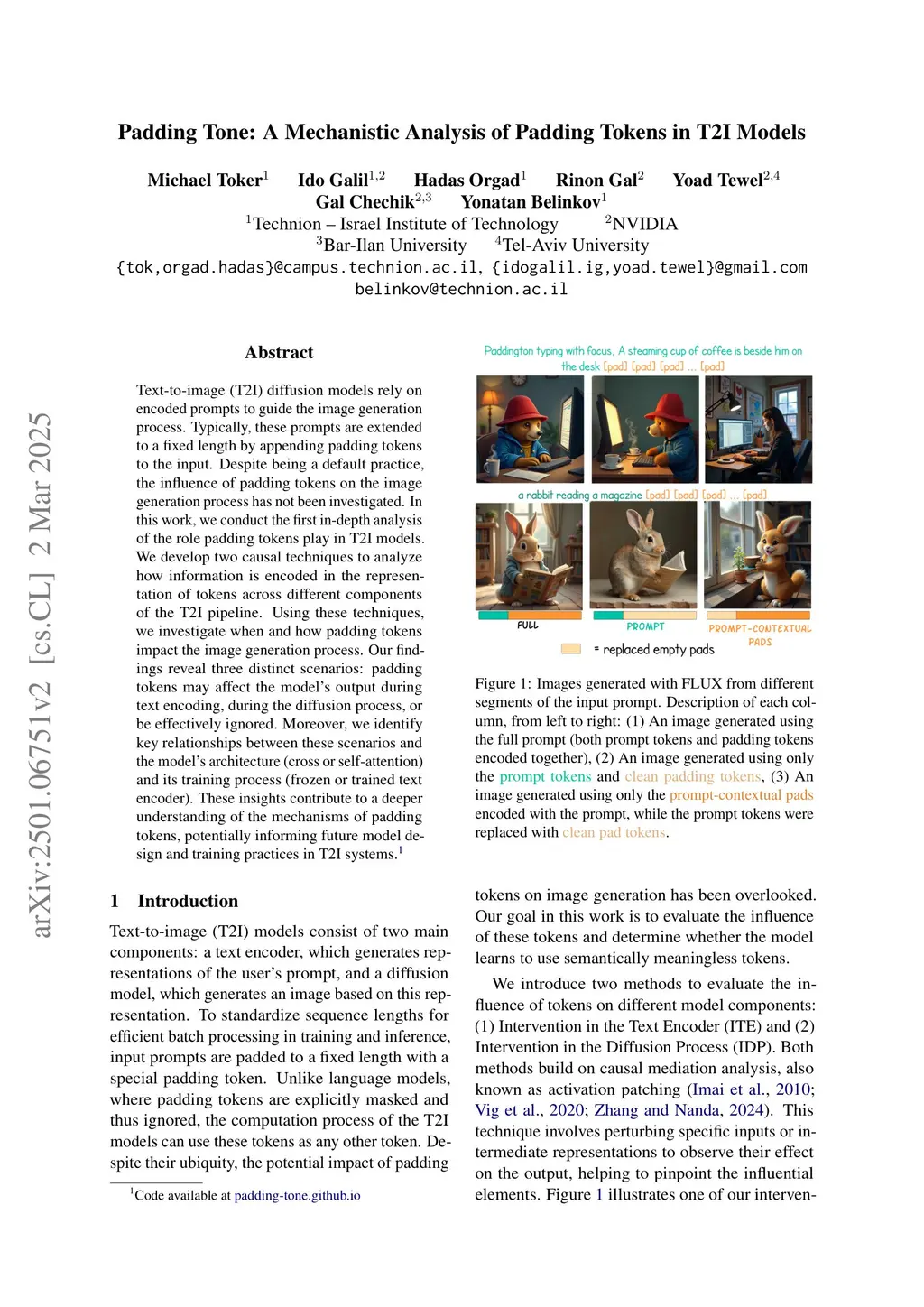 Text-to-image (T2I) diffusion models rely on encoded prompts to guide the image generation process. Typically, these prompts are extended to a fixed length by adding padding tokens before text encoding. Despite being a default practice, the influence of padding tokens on the image generation process has not been investigated. In this work, we conduct the first in-depth analysis of the role padding tokens play in T2I models. We develop two causal techniques to analyze how information is encoded in the representation of tokens across different components of the T2I pipeline. Using these techniques, we investigate when and how padding tokens impact the image generation process. Our findings reveal three distinct scenarios: padding tokens may affect the model's output during text encoding, during the diffusion process, or be effectively ignored. Moreover, we identify key relationships between these scenarios and the model's architecture (cross or self-attention) and its training process (frozen or trained text encoder). These insights contribute to a deeper understanding of the mechanisms of padding tokens, potentially informing future model design and training practices in T2I systems.