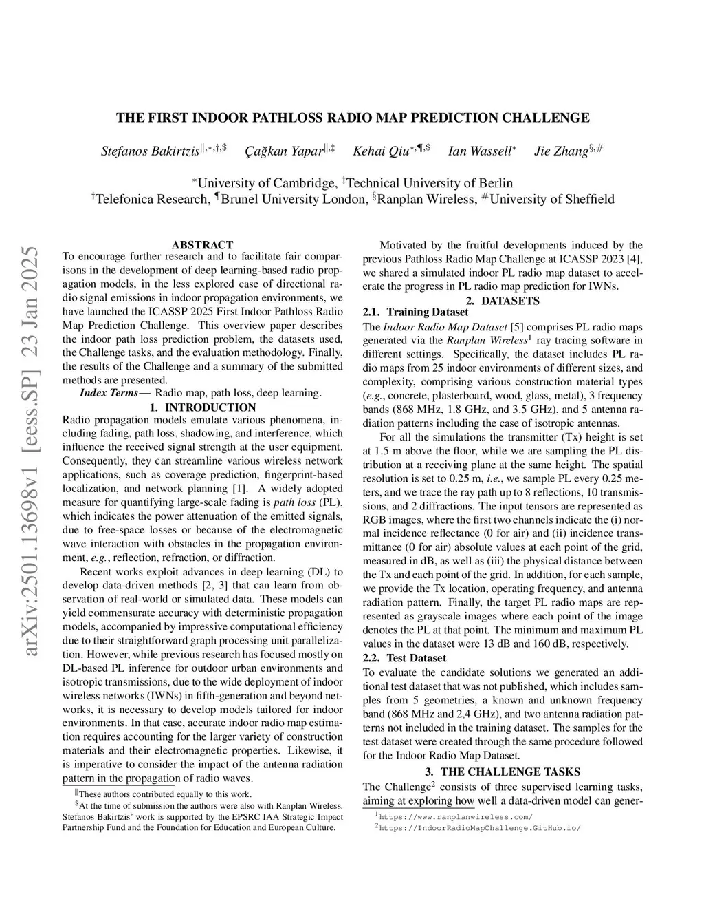 To encourage further research and to facilitate fair comparisons in the development of deep learning-based radio propagation models, in the less explored case of directional radio signal emissions in indoor propagation environments, we have launched the ICASSP 2025 First Indoor Pathloss Radio Map Prediction Challenge. This overview paper describes the indoor path loss prediction problem, the datasets used, the Challenge tasks, and the evaluation methodology. Finally, the results of the Challenge and a summary of the submitted methods are presented.