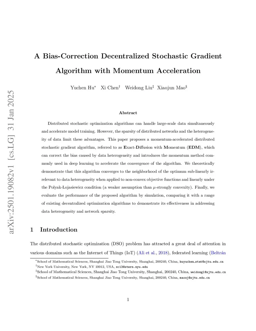 A Bias-Correction Decentralized Stochastic Gradient Algorithm with Momentum Acceleration