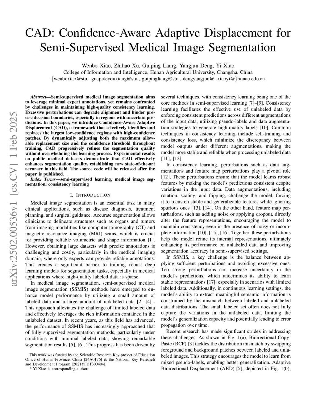 CAD: Confidence-Aware Adaptive Displacement for Semi-Supervised Medical Image Segmentation