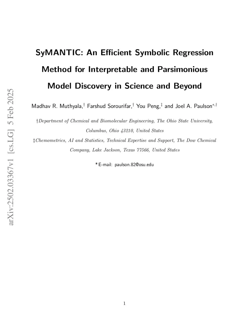 SyMANTIC: An Efficient Symbolic Regression Method for Interpretable and Parsimonious Model Discovery in Science and Beyond