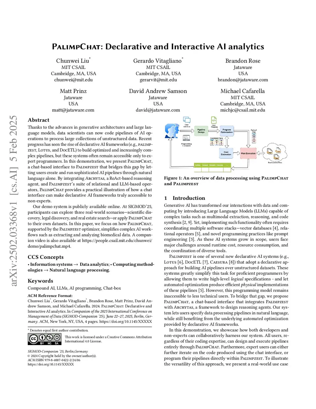 PalimpChat: Declarative and Interactive AI analytics