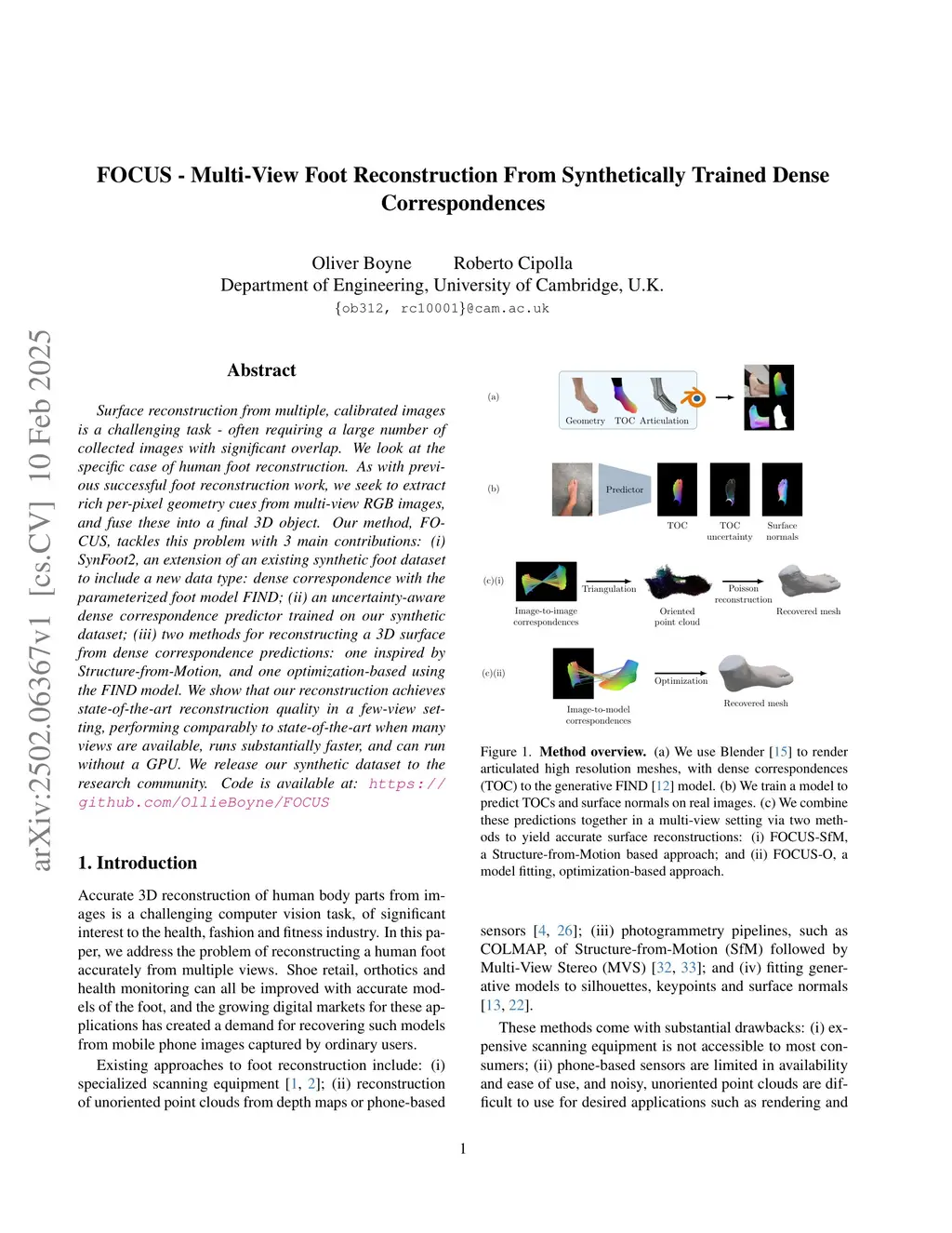 FOCUS - Multi-View Foot Reconstruction From Synthetically Trained Dense Correspondences