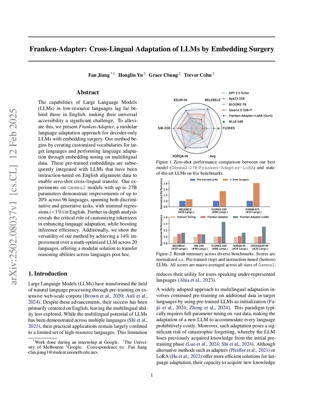 Franken-Adapter: Cross-Lingual Adaptation of LLMs by Embedding Surgery