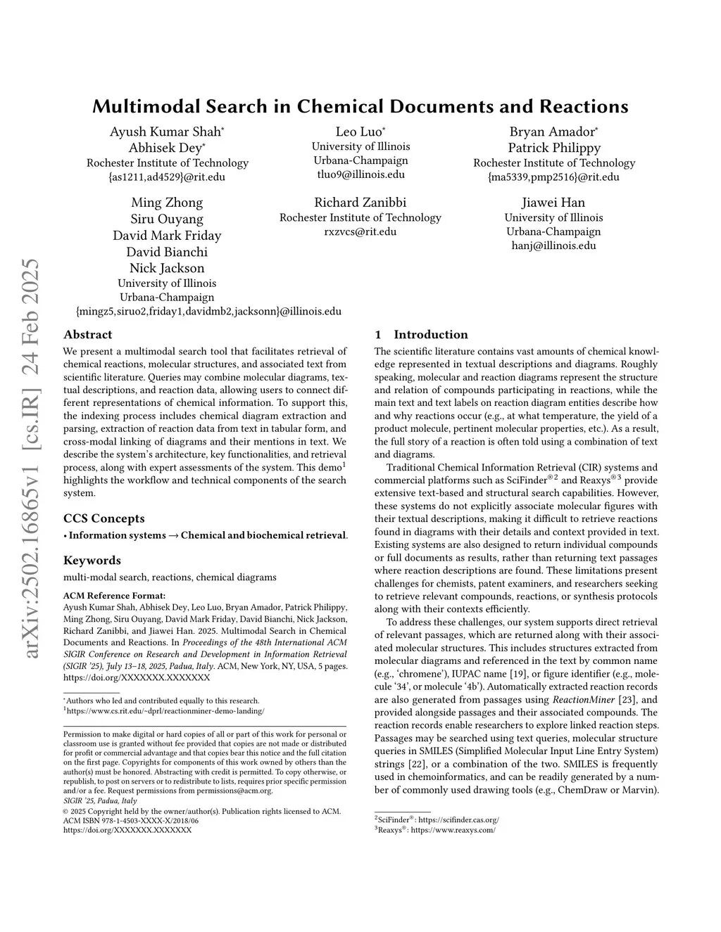 Multimodal Search in Chemical Documents and Reactions
